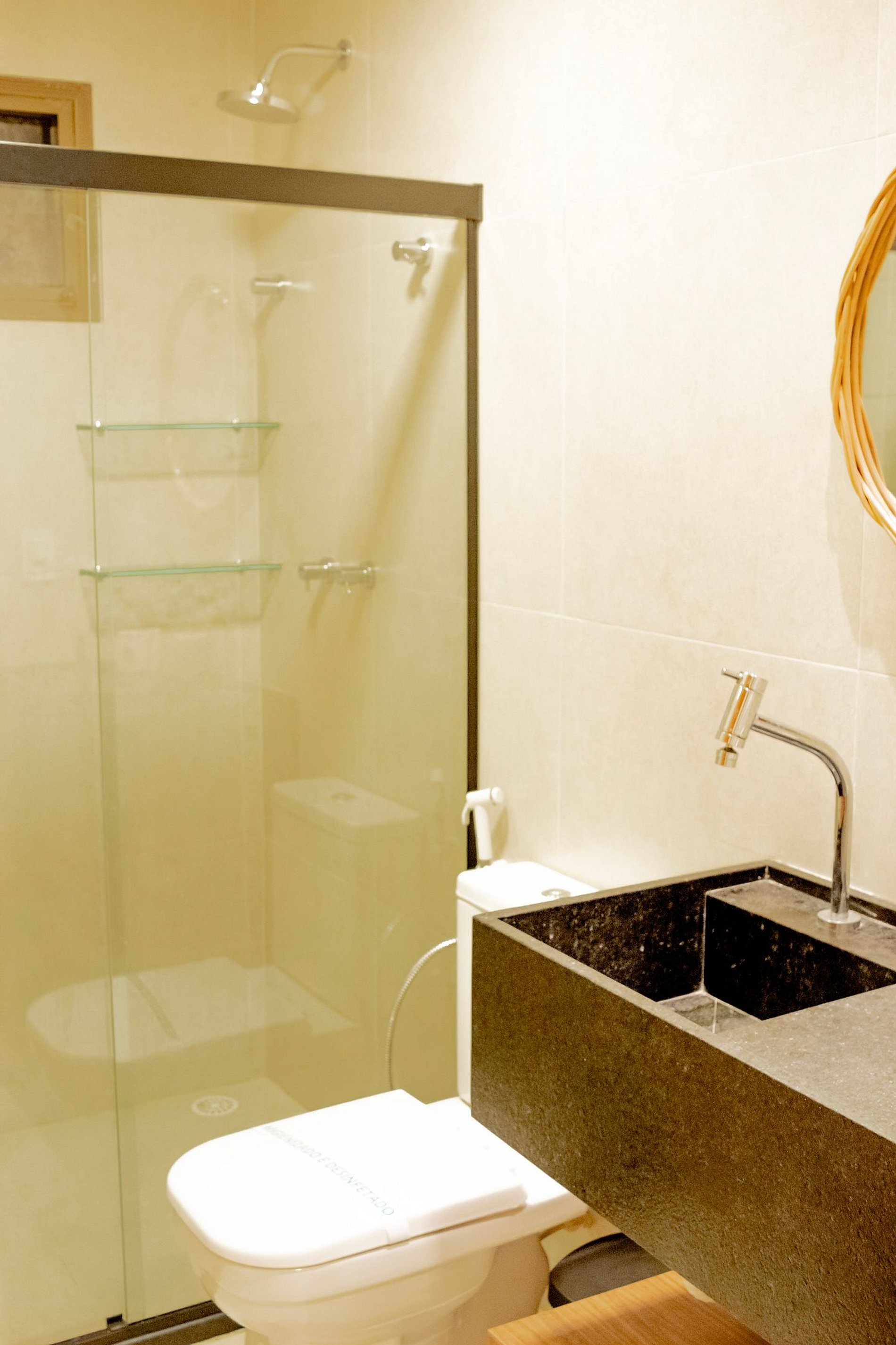 • Banheiro com chuveiro elétrico e secador de cabelo.