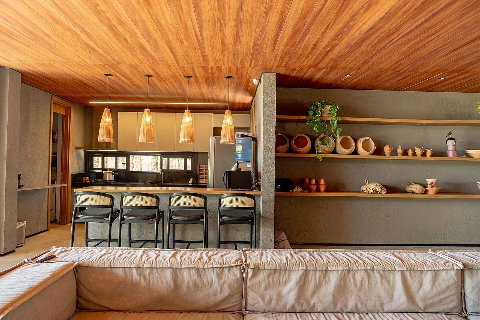 Vamos começar falando do lugarzinho da casa onde muitas delícias sairão: A cozinha! Ela é super completa contando com geladeira, microondas, liquidificador, torradeira, jogo de talheres e pratos, cooktop de 04 bocas, forno embutido e diversas panelas.