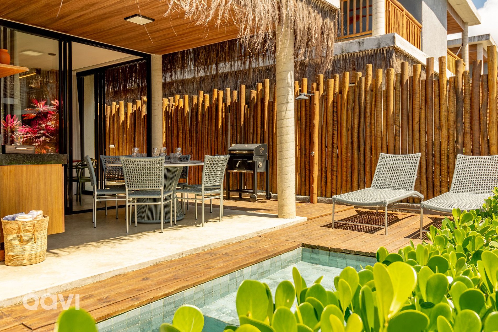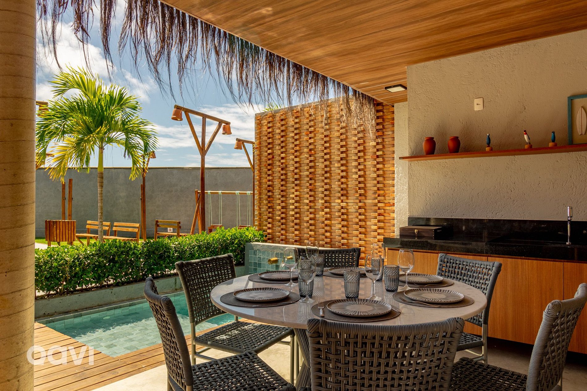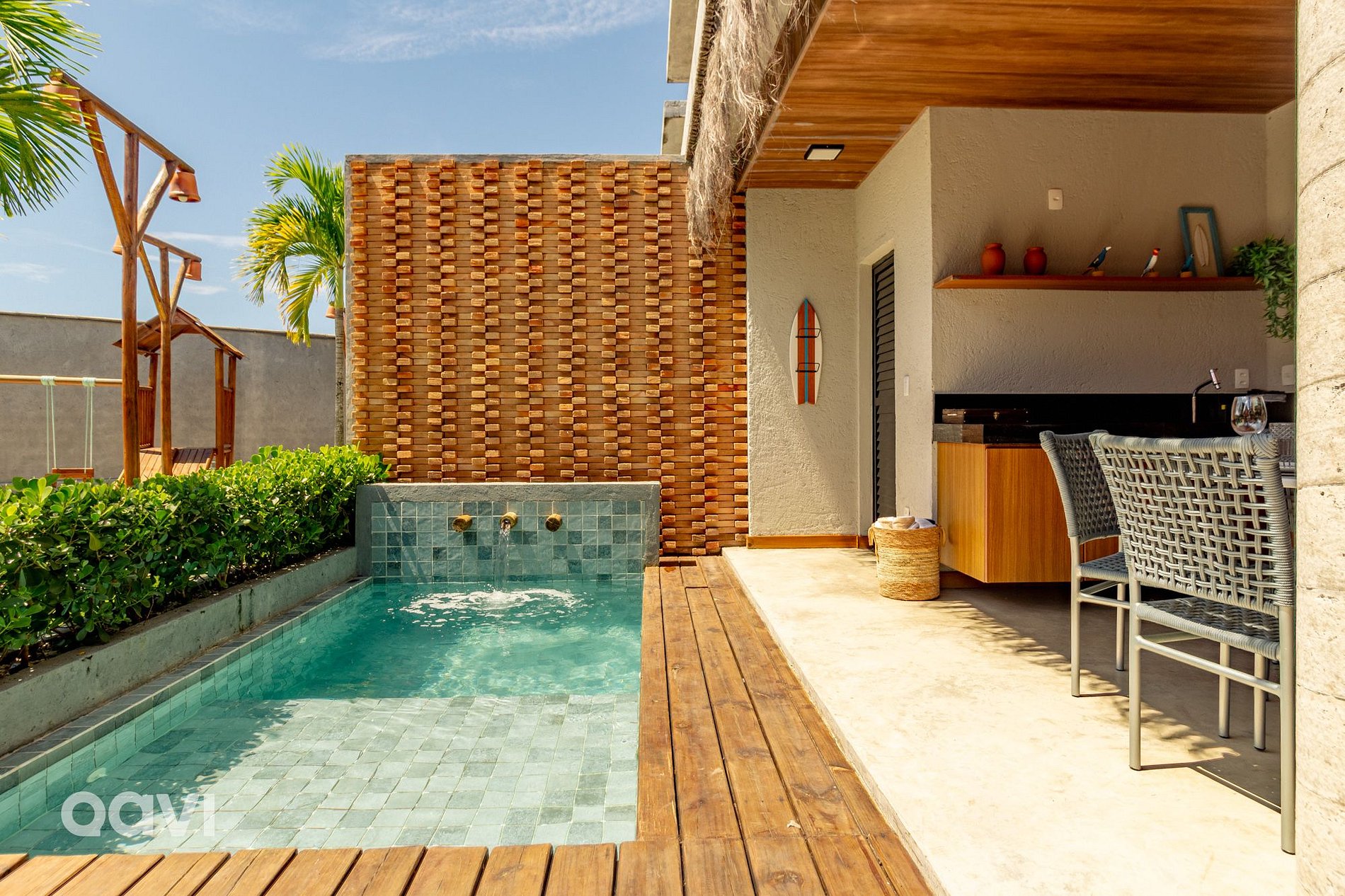 Upon entering the property, you will be greeted by a setting of tranquility and beauty, with an inviting private pool, surrounded by sun loungers and outdoor seating areas, perfect for enjoying sunny days under the blue skies of Alagoas. Whether relaxing in the refreshing water of the pool or enjoying a barbecue with friends and family in the gourmet space next door, every moment in this house is a unique experience.