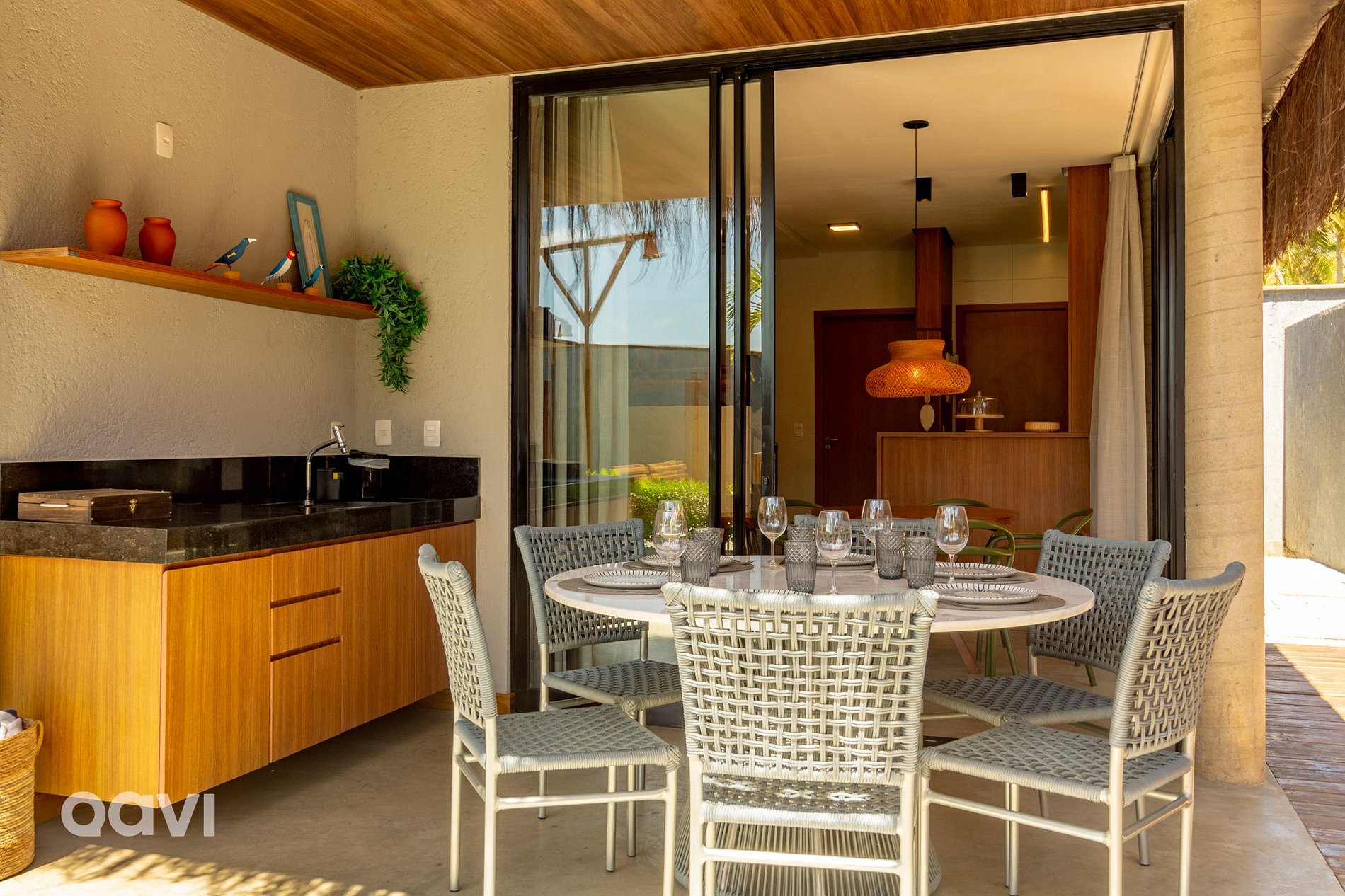 Upon entering the property, you will be greeted by a setting of tranquility and beauty, with an inviting private pool, surrounded by sun loungers and outdoor seating areas, perfect for enjoying sunny days under the blue skies of Alagoas. Whether relaxing in the refreshing water of the pool or enjoying a barbecue with friends and family in the gourmet space next door, every moment in this house is a unique experience.