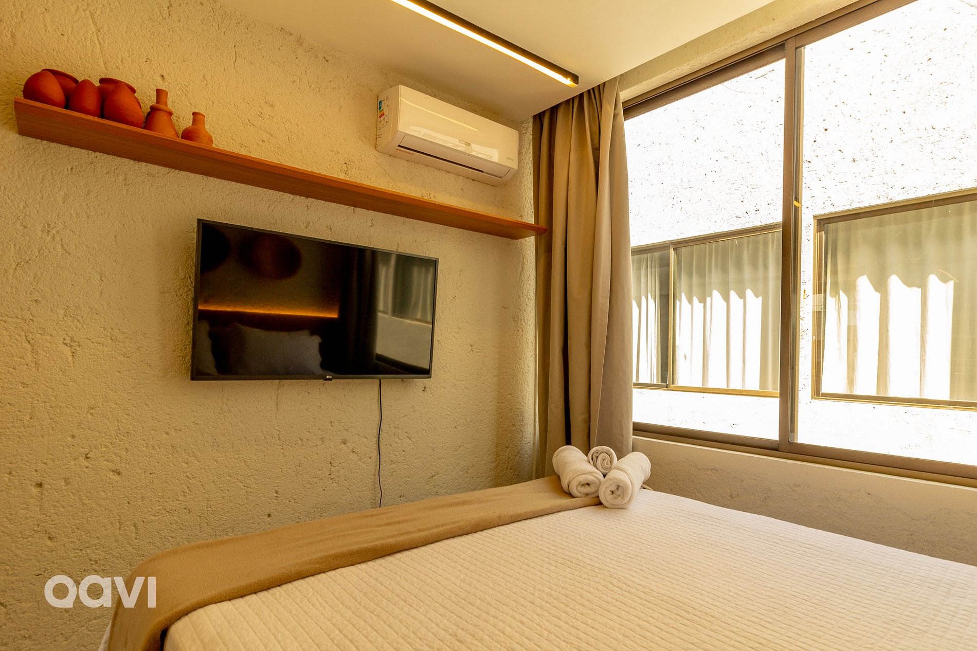 • Suíte 1: Uma cama de casal, ar-condicionado, TV Smart, armário e blackout nas cortinas;