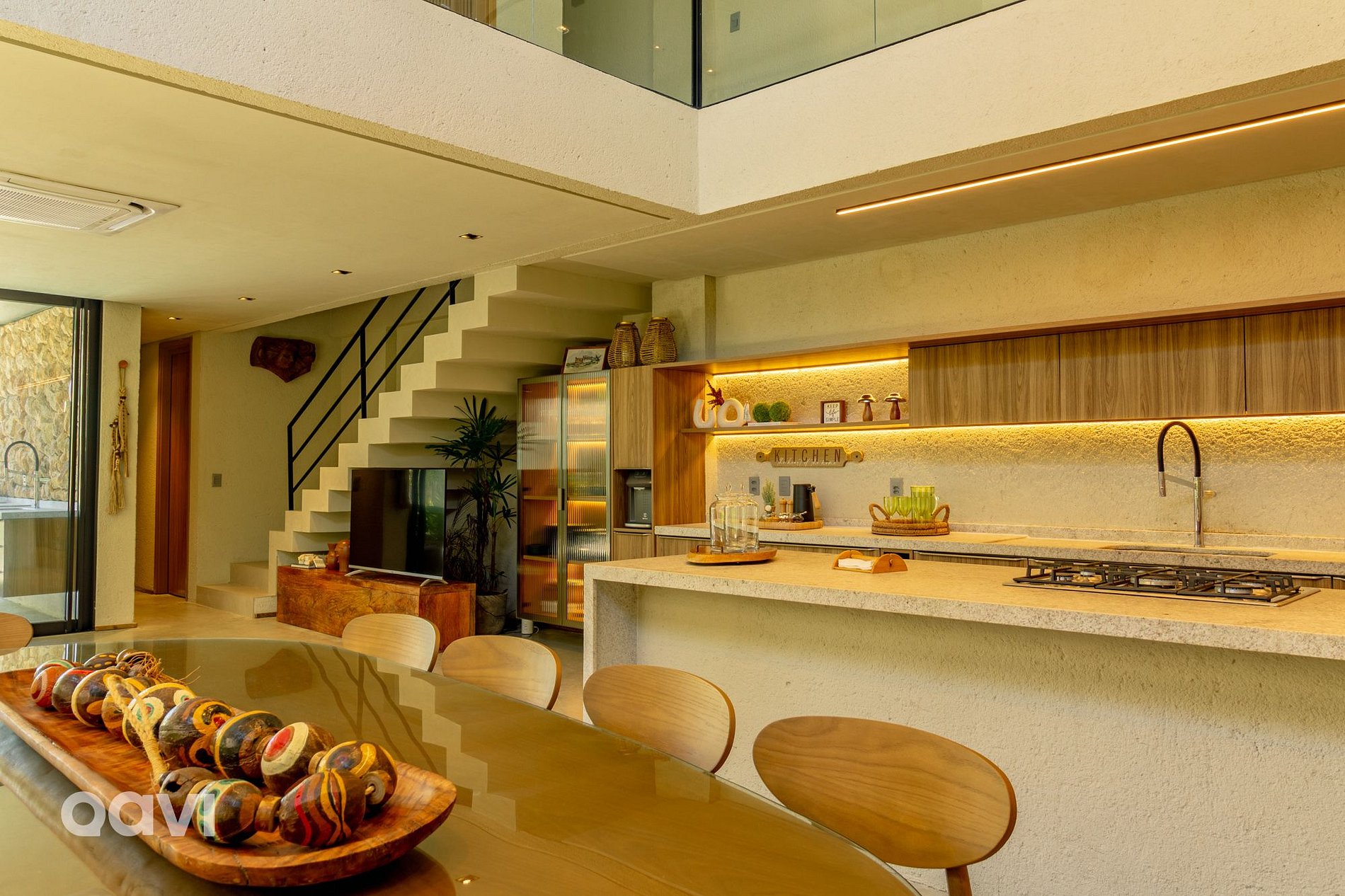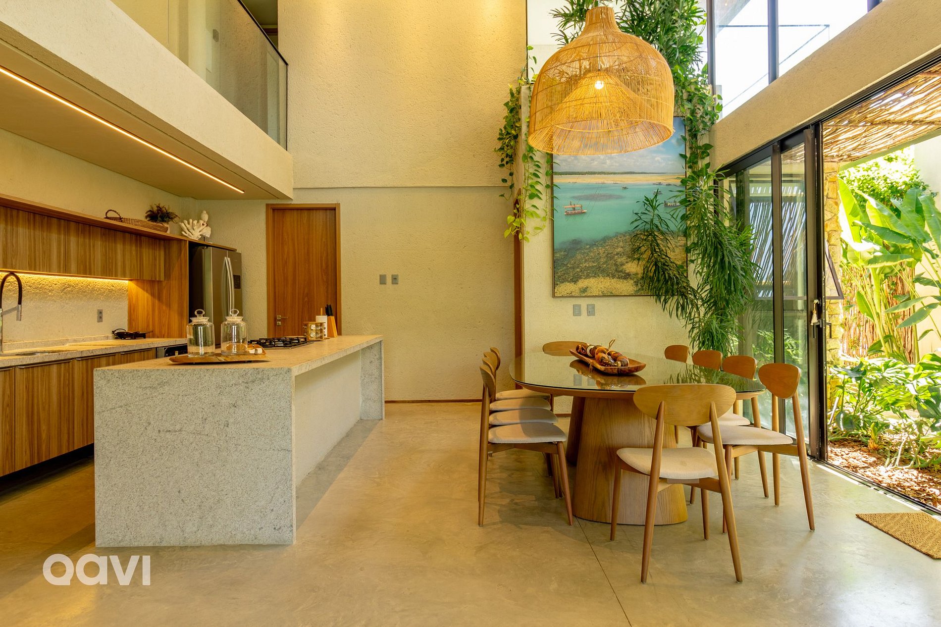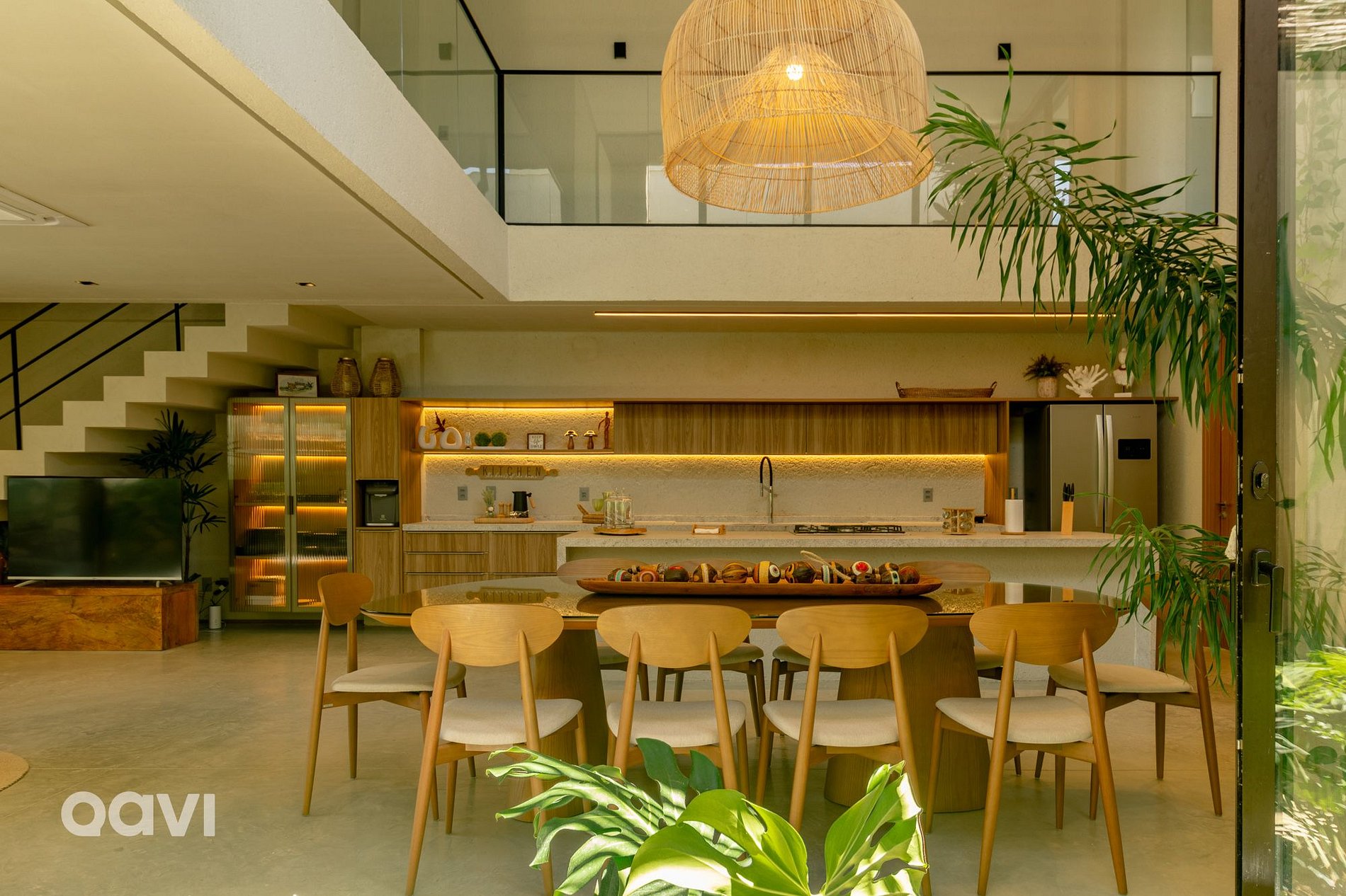 • Sala: Espaço amplo com ambiente integrado e televisão Smart, mesa para refeições e integração com a cozinha;