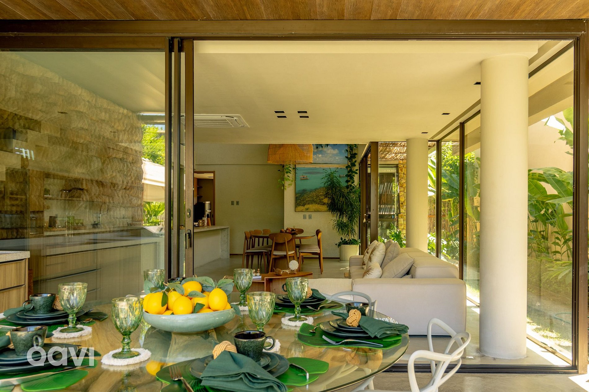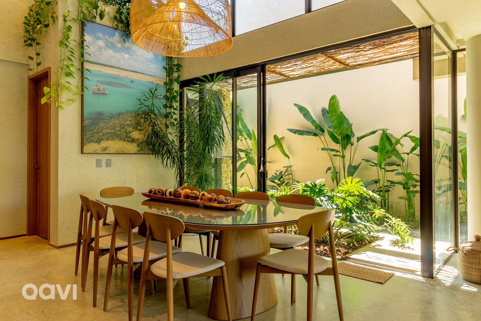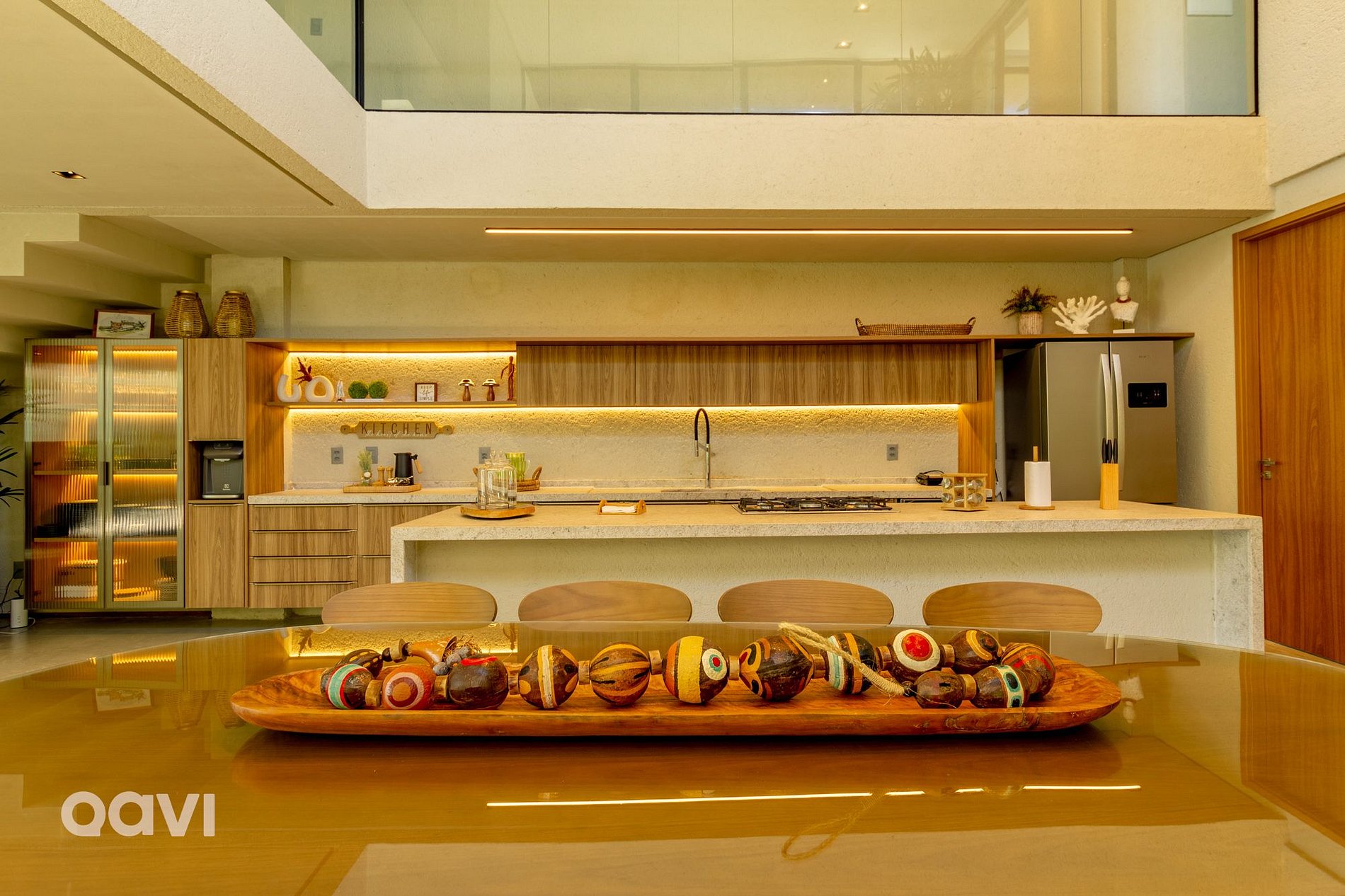 • Sala: Espaço amplo com ambiente integrado e televisão Smart, mesa para refeições e integração com a cozinha;