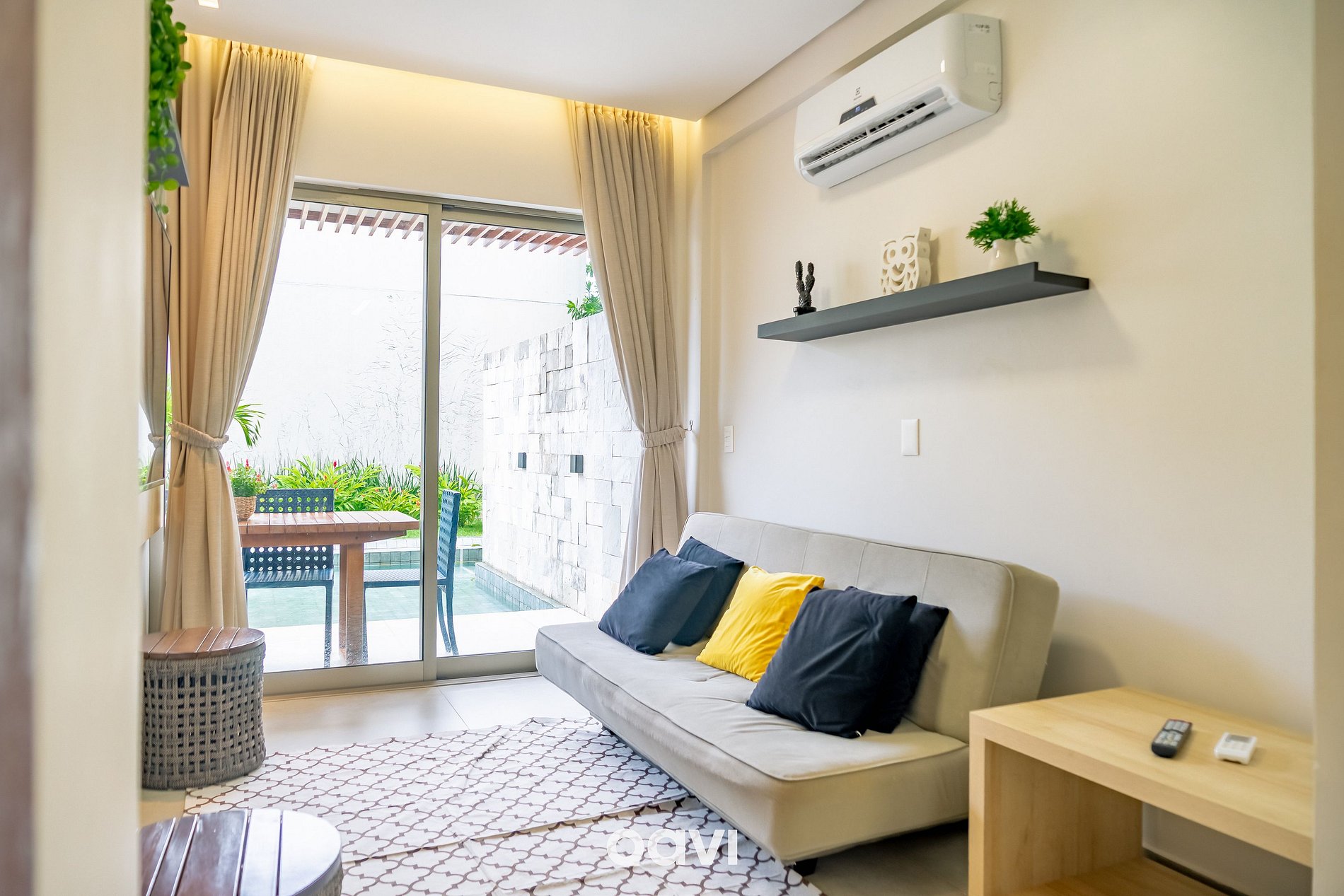 • Varanda privativa com piscina exclusiva, poltronas e mesa de centro – perfeita para relaxar!;