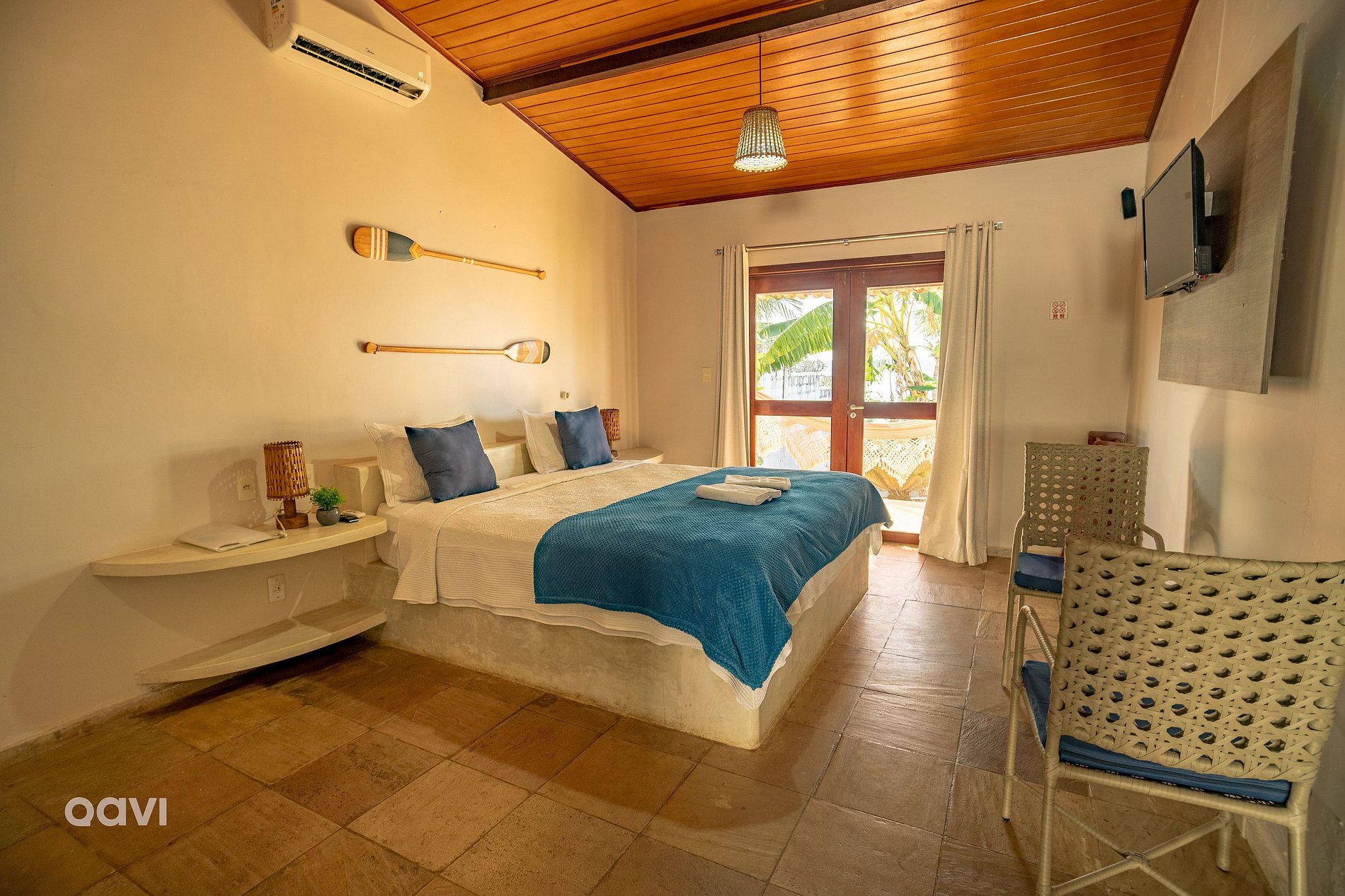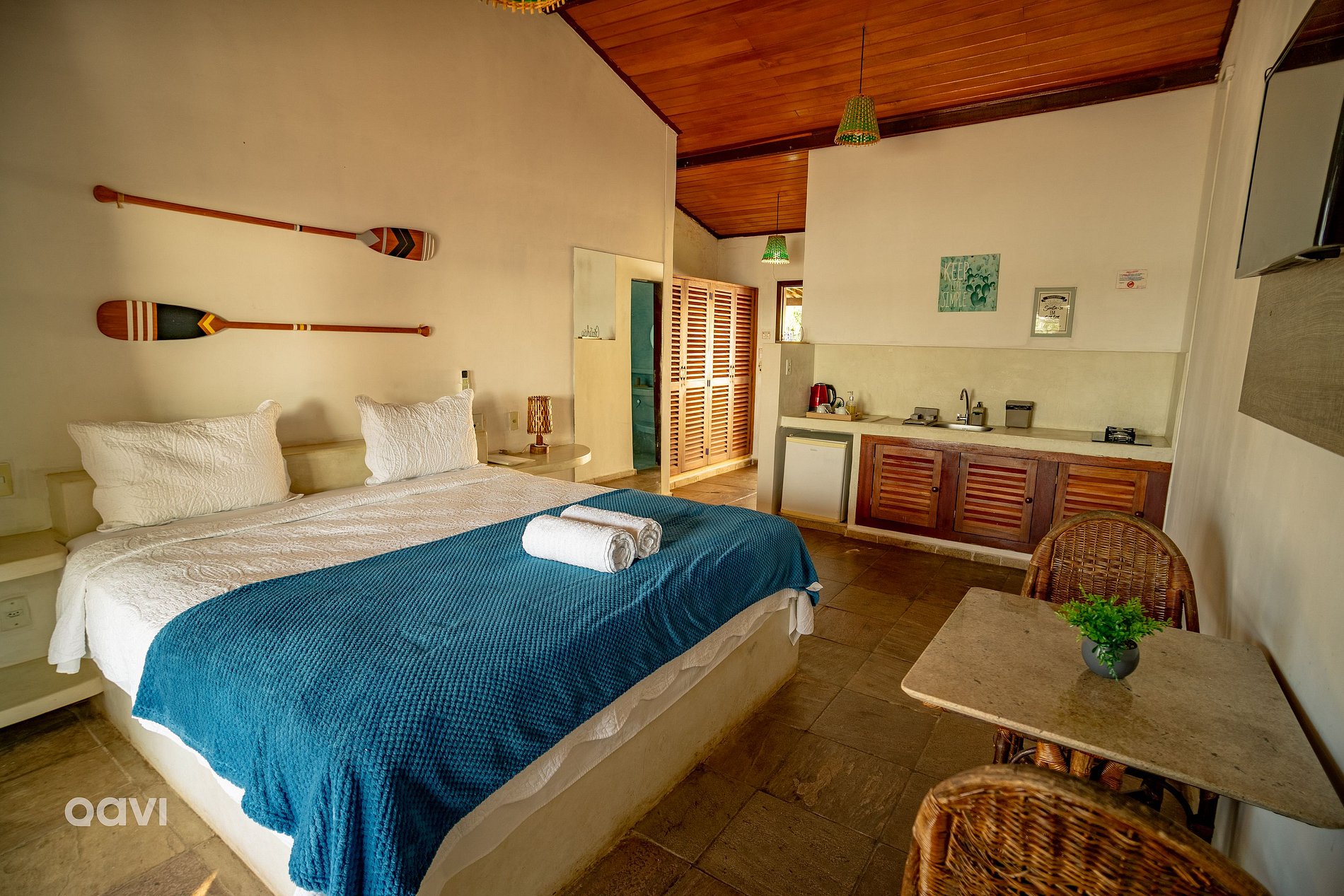 They have air conditioning, TV, closet, king size bed, hammock and are equipped with mini kitchen (stove coocktop 2 burners, fridge, cooking utensils, electric sandwich maker).