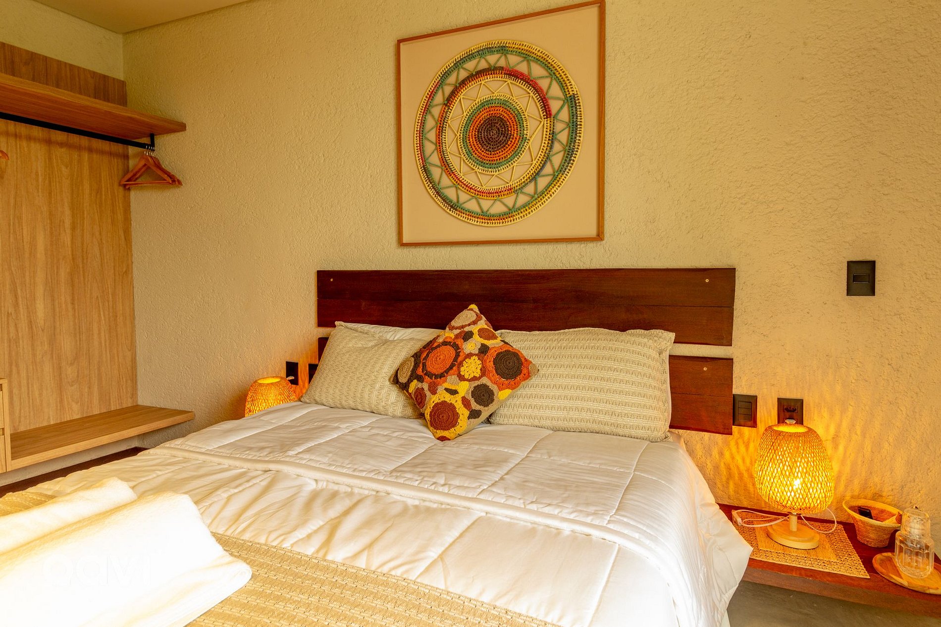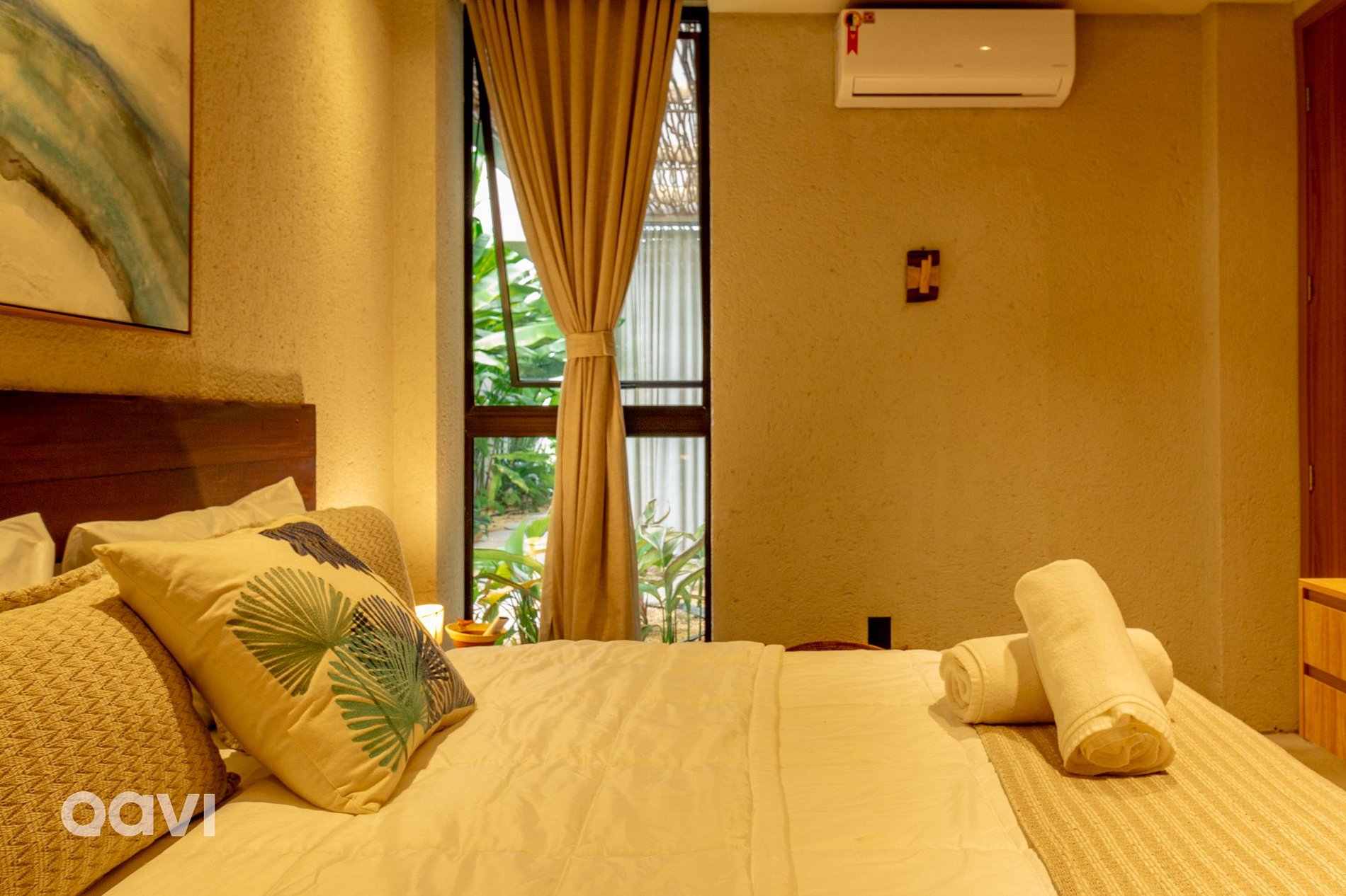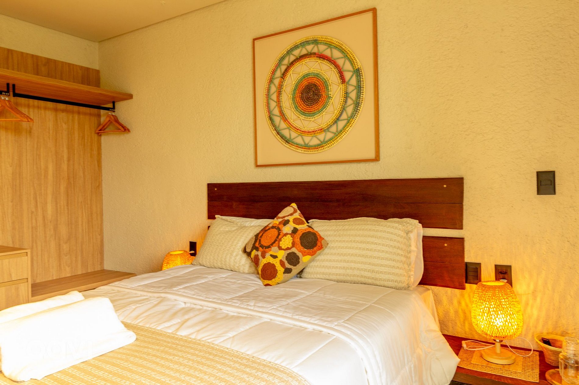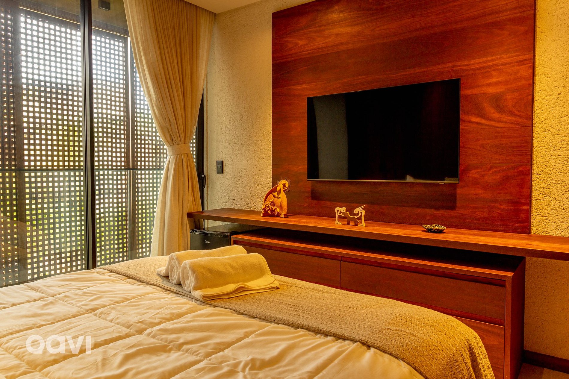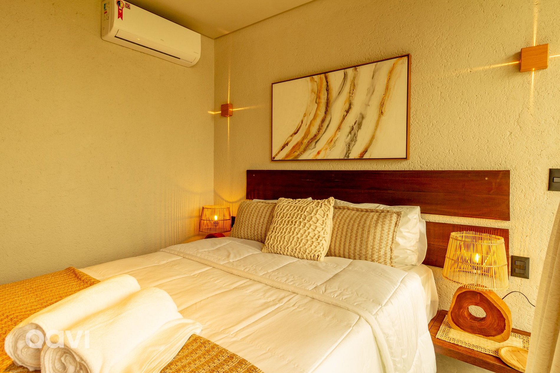• Suíte 2: cama de casal, ar-condicionado, televisão smart tv, espelho de corpo inteiro, aparelhos decorativos e banheiro com utensílios básicos;