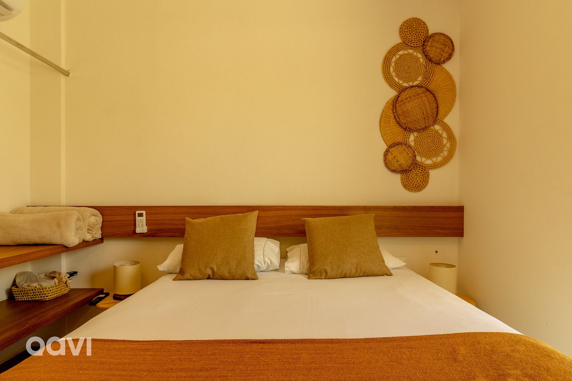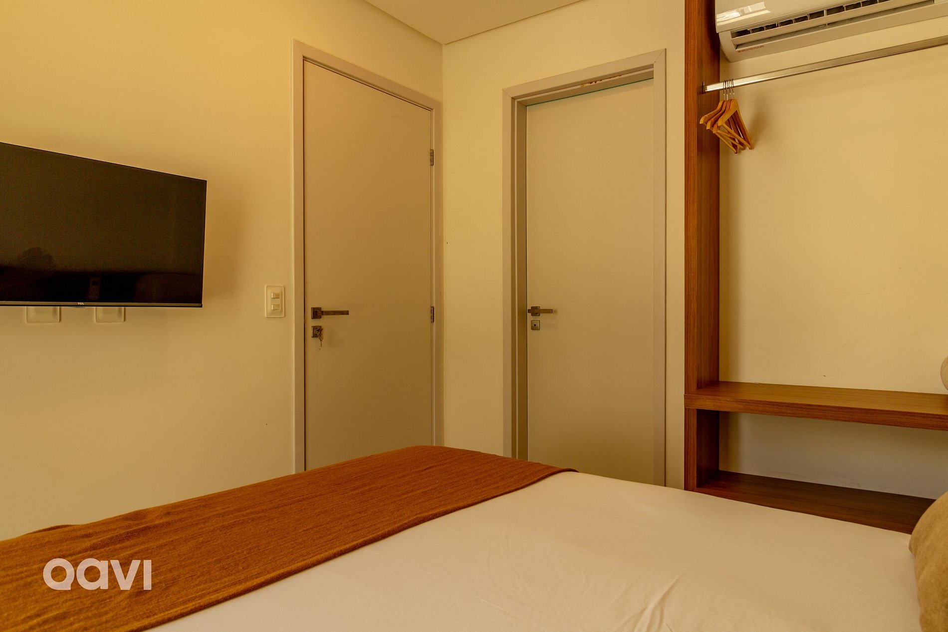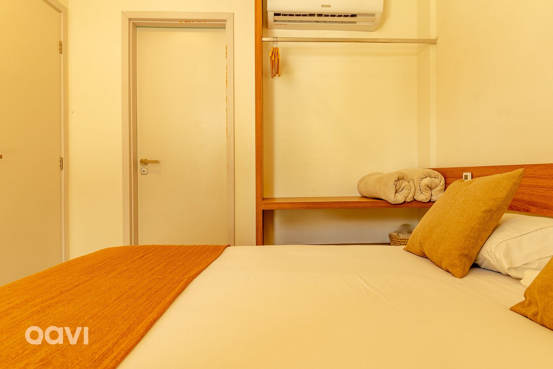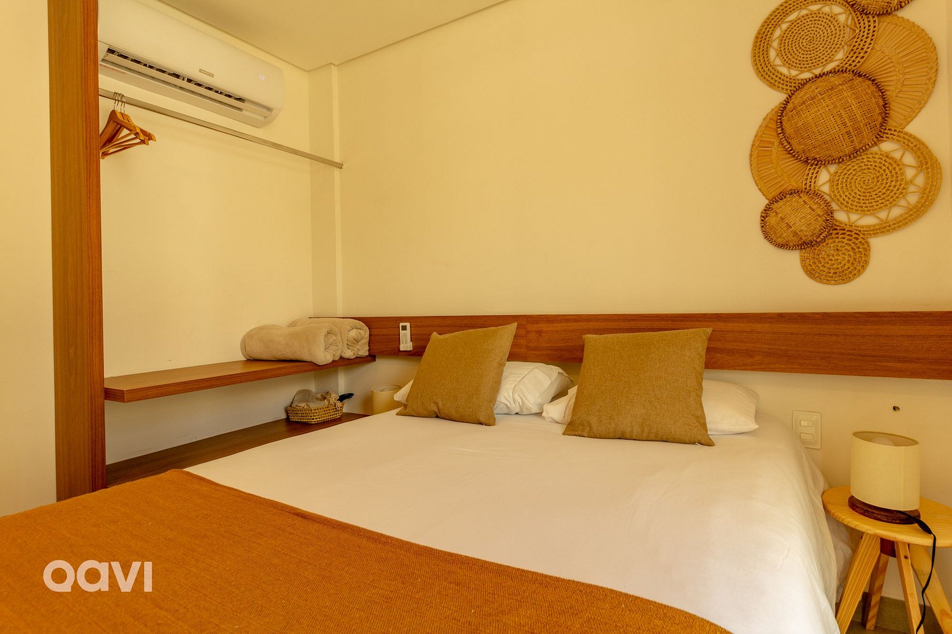 • Suíte 2: cama de casal, itens decorativos, ar-condicionado e banheiro com utensílios básicos;