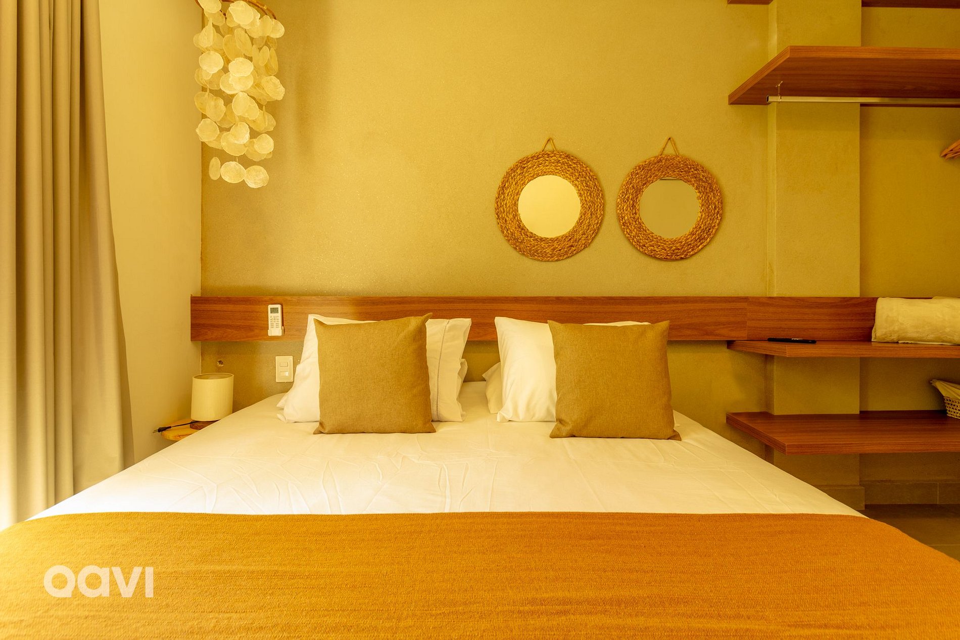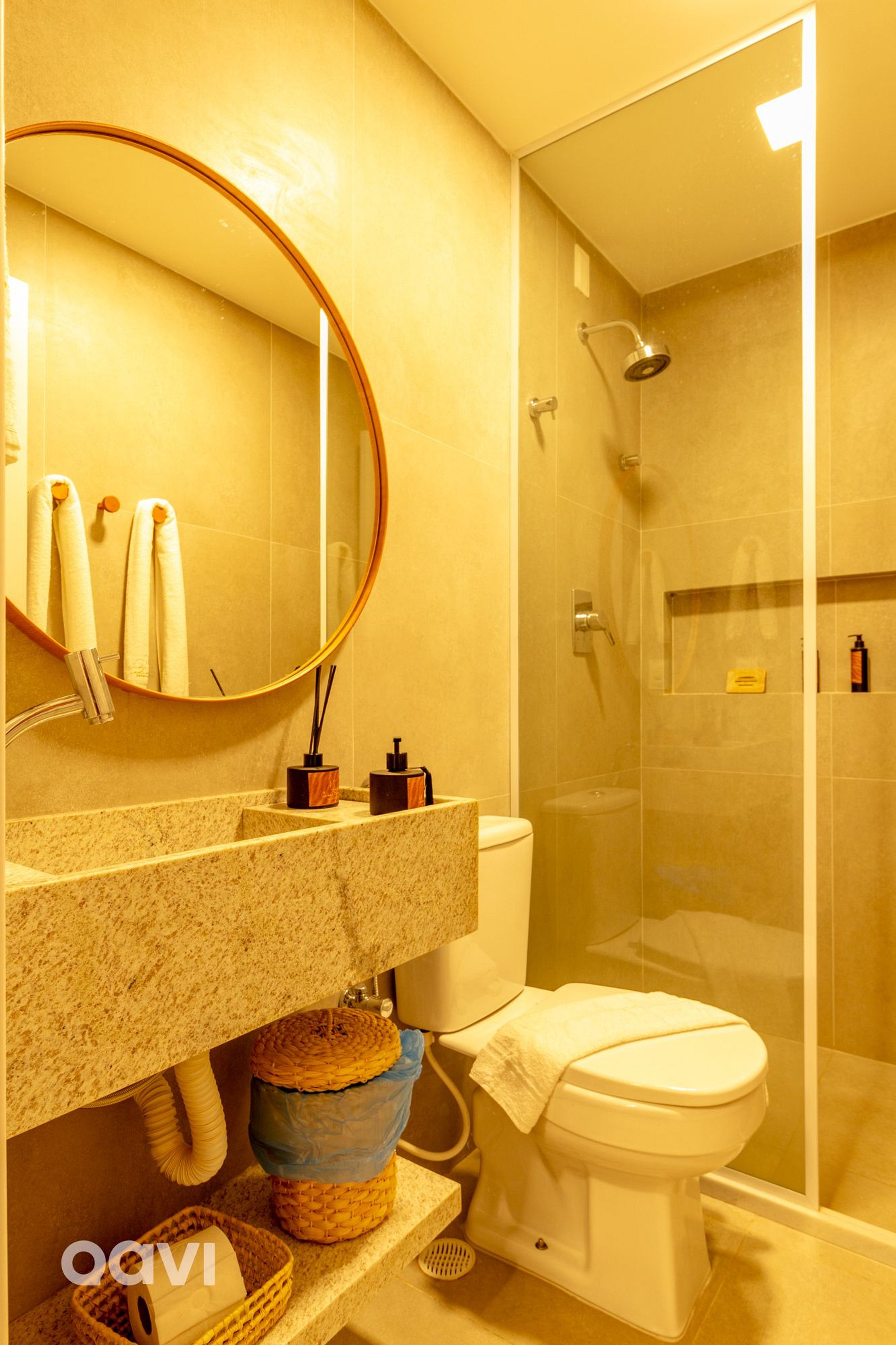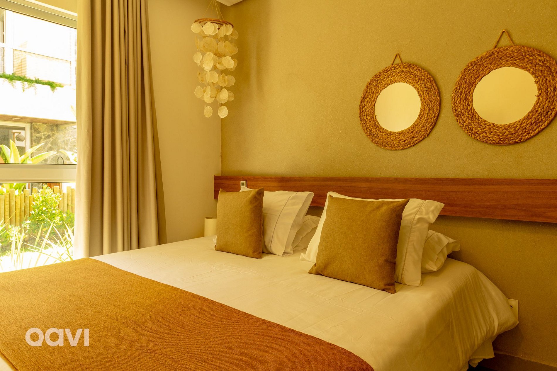 • Suíte 2: cama de casal, itens decorativos, ar-condicionado e banheiro com utensílios básicos;
