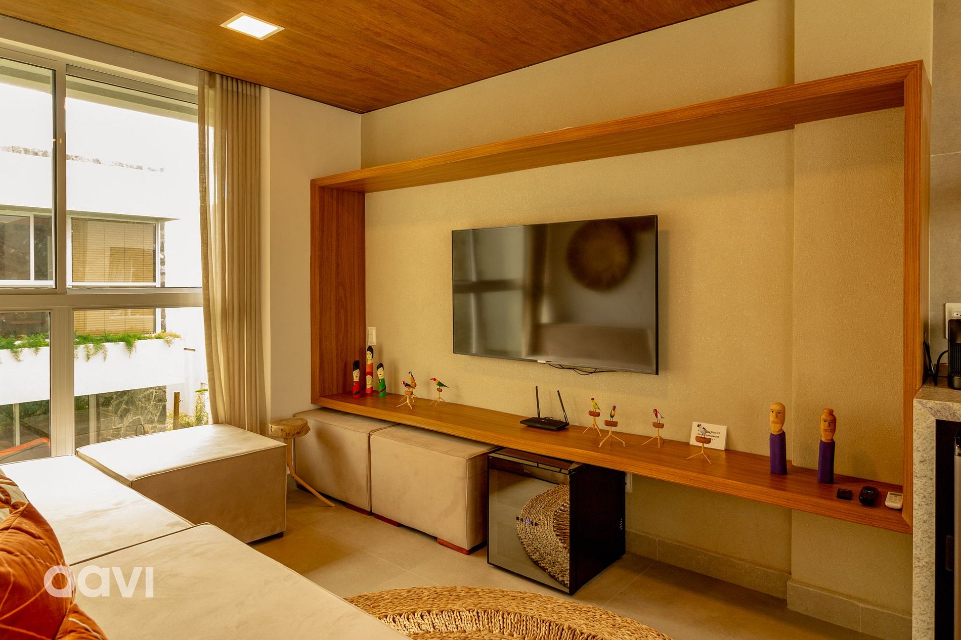 • Sala de TV e jantar no primeiro andar: televisão (Smart-TV), sofá, rack, mesa e cadeiras;