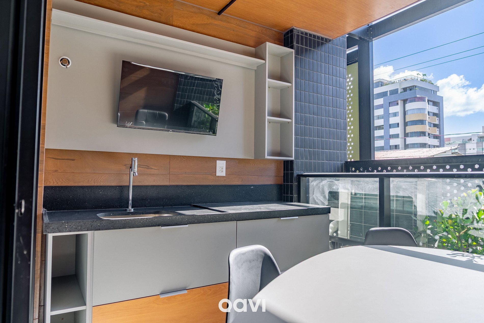 The condominium offers complete infrastructure, including a rooftop pool, a children's area, a gourmet space with a barbecue, covered parking, and 24-hour reception.