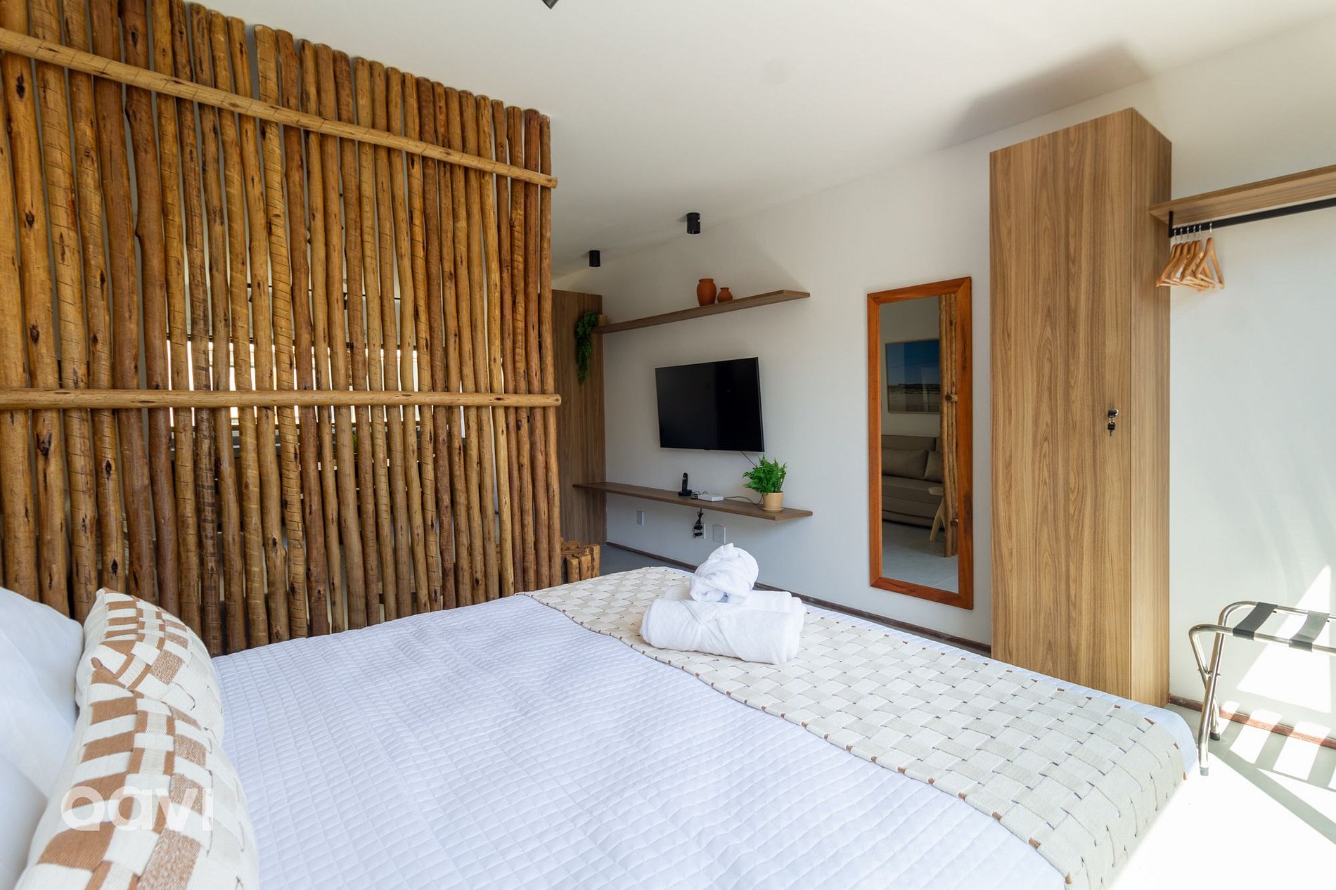 • Sofá-cama de casal, cama de casal, ar condicionado, Smart TV, cortinas blackout, banheiro privativo.