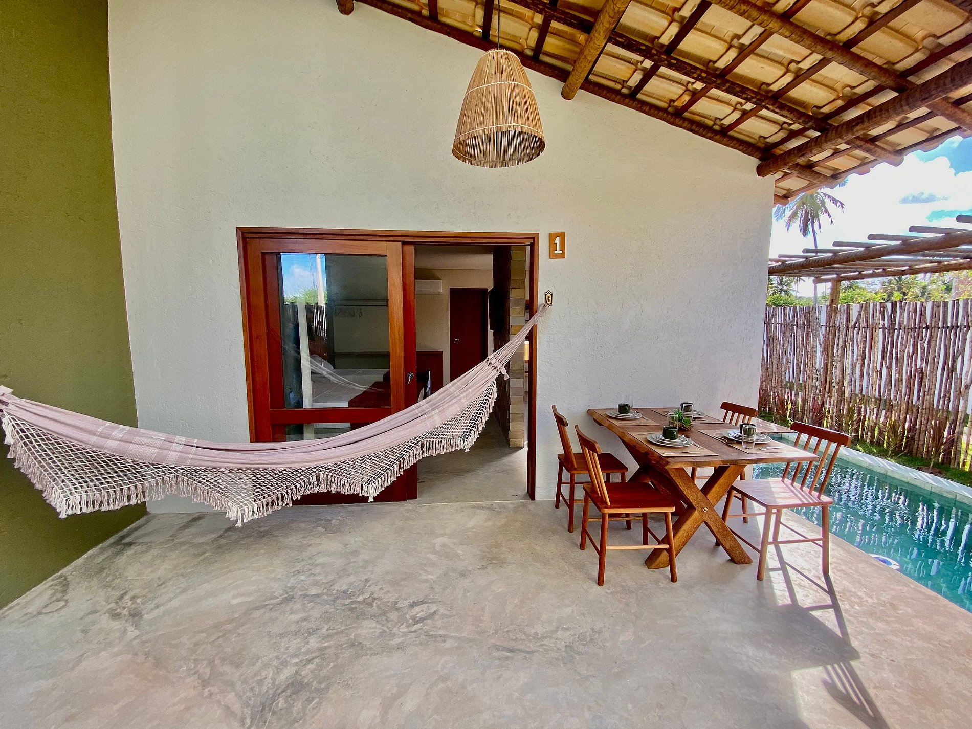 Todas as acomodações possuem piscina privativa ao ar livre, jardim, ar-condicionado, varanda térrea e Wi-Fi gratuito.