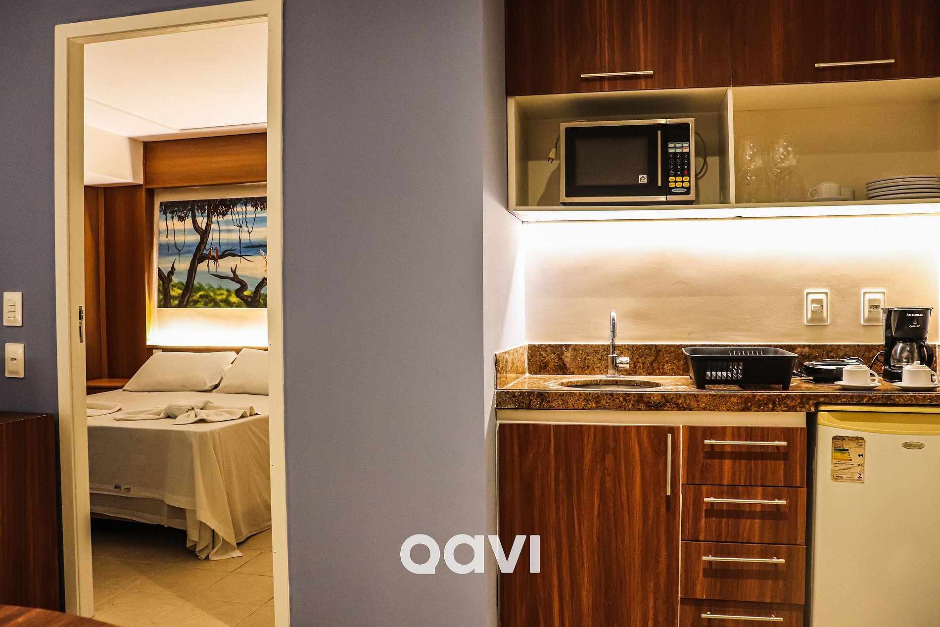 - Cozinha: Frigobar, micro-ondas, fogão elétrico de 2 bocas, torradeira, cafeteira e cutelaria em geral.