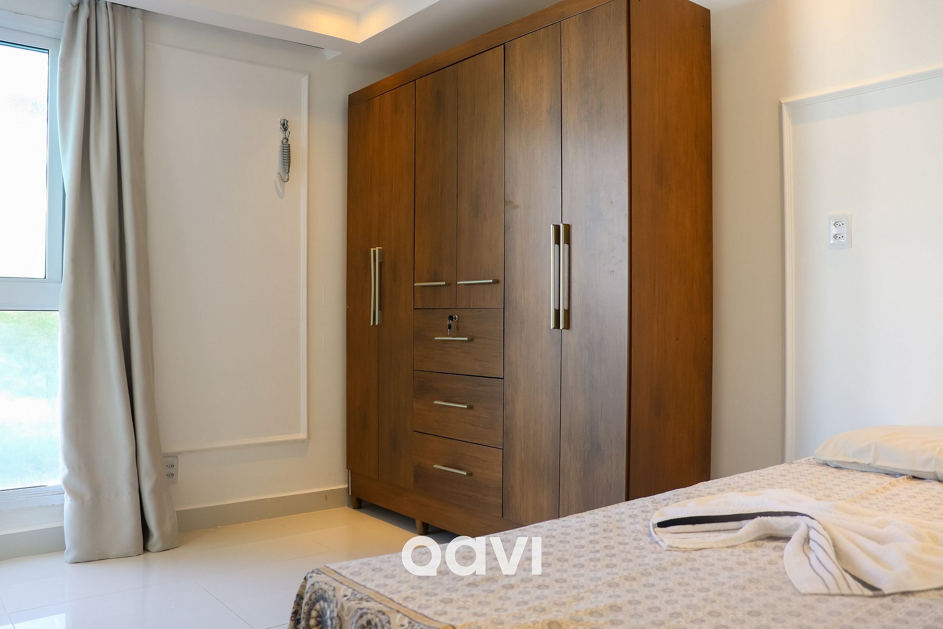 - Suíte: 1 cama Queen, closet, ar-condicionado, cortina blackout, acesso à varanda e banheiro completo;