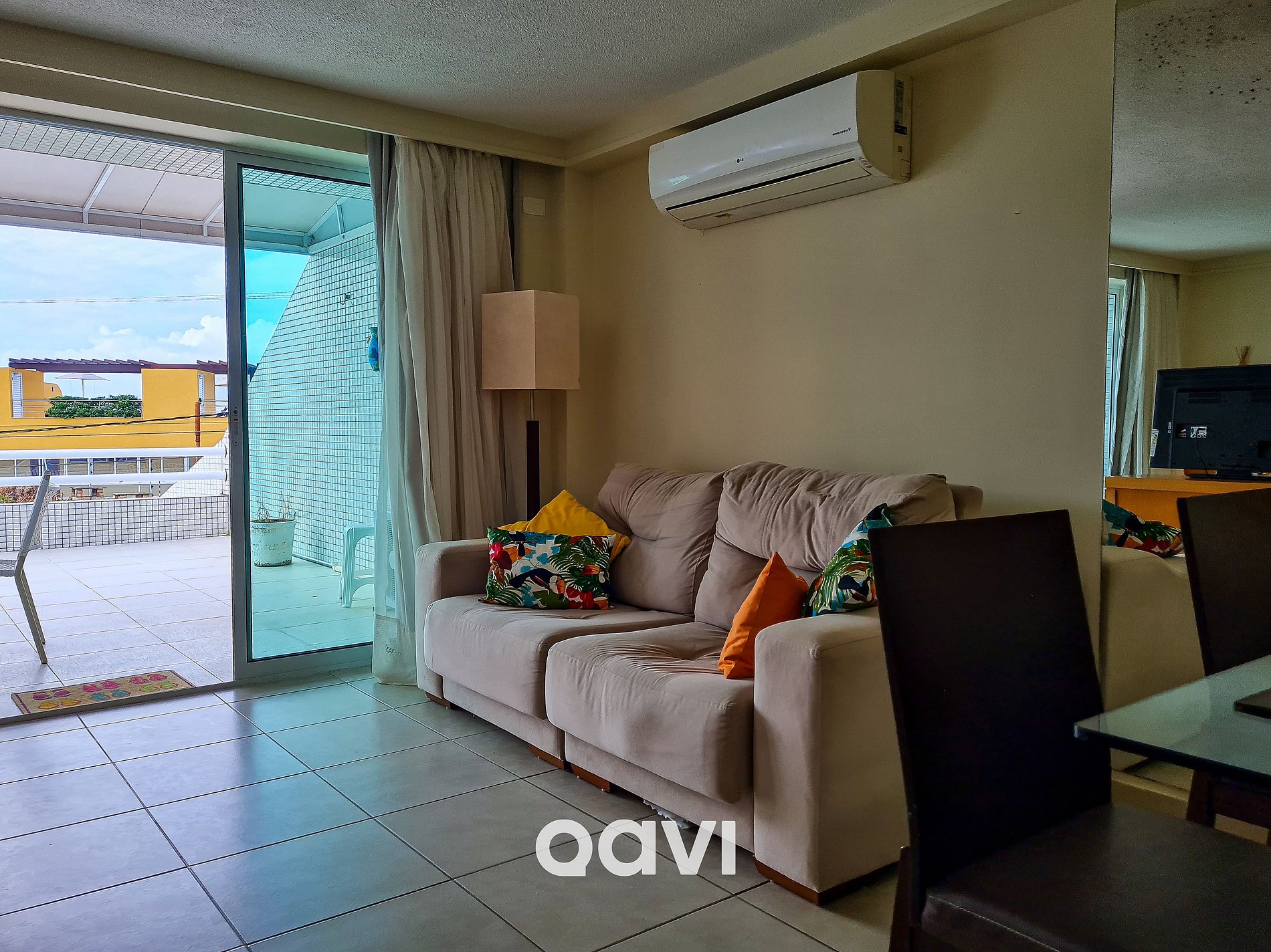 O Flat é aconchegante e bem equipado, possui dois banheiros, cozinha completa e uma ampla varanda com vista para área de lazer do condomínio, onde também é possível ter um vislumbre do mar de Ponta Negra.