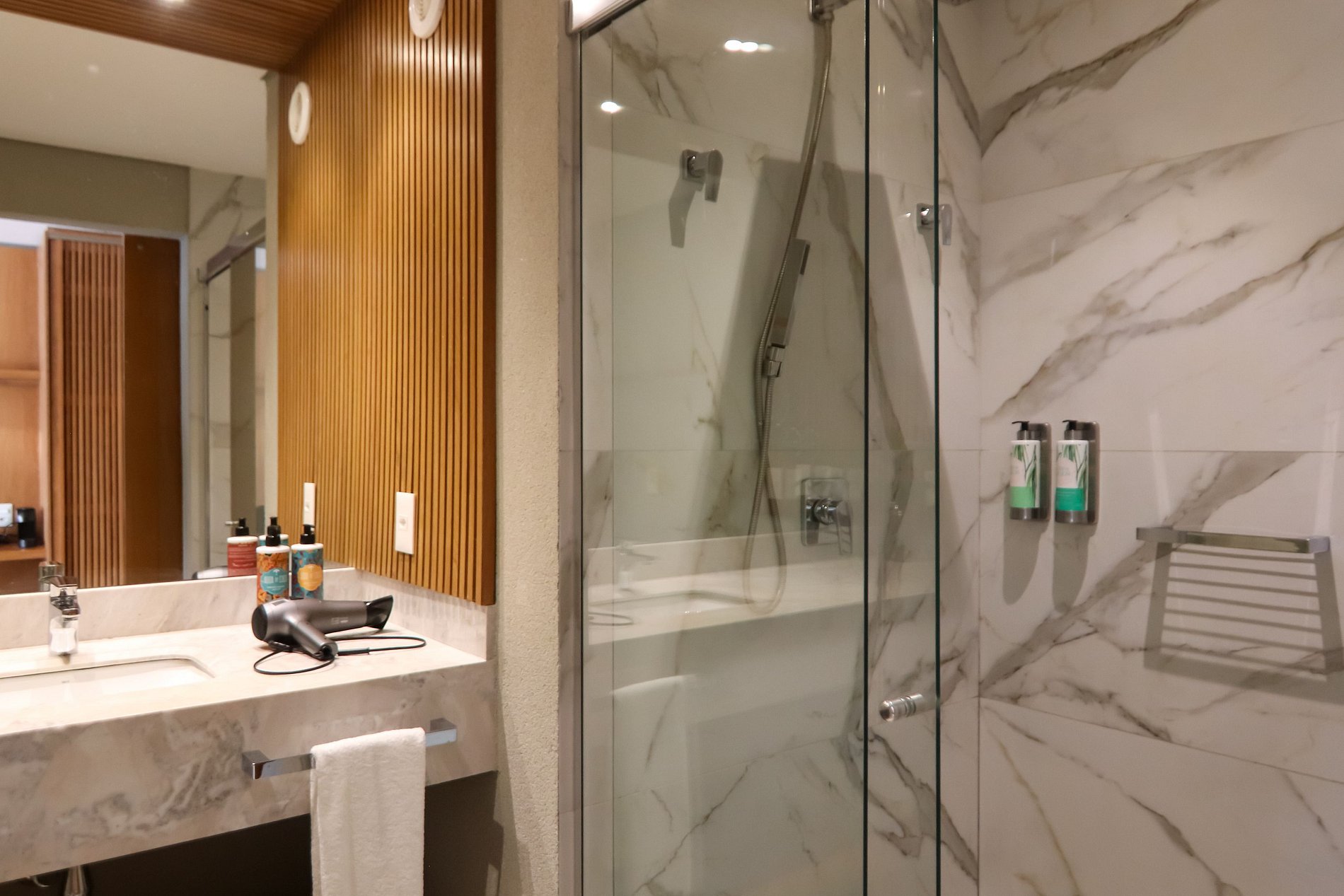 Banheiro: Chuveiro com aquecimento e arara para acomodar suas roupas com facilidade. Como toque adicional, fornecemos produtos de banho de qualidade L'Occitane Au Brésil, incluindo shampoo, condicionador e sabonete.