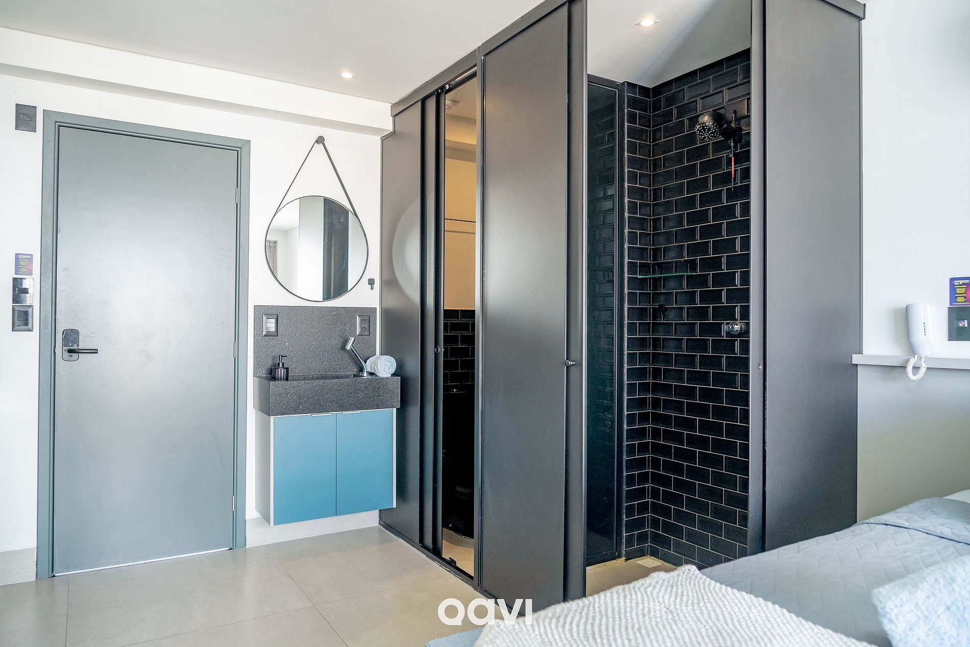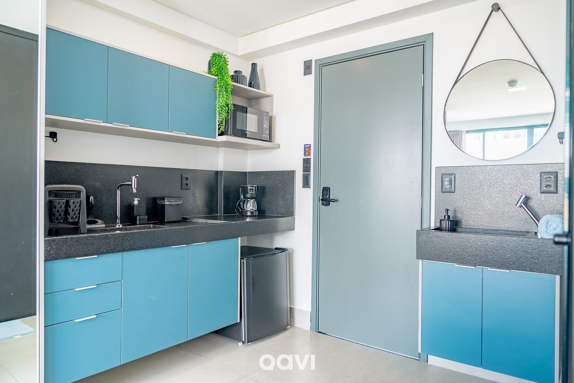 O apartamento que tem um finíssimo acabamento, é uma suíte integrada, com cozinha e área de estudo/trabalho e Wi-fi, sendo todo o ambiente planejado para proporcionar conforto e praticidade aos hóspedes.