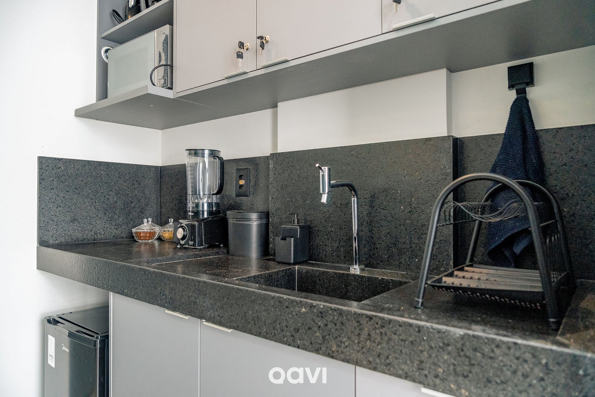 - Cozinha: Microondas e frigobar, Air fryer, sanduicheira, liquidificador, cafeteira elétrica e utensílios básicos (talheres, copos e taças);