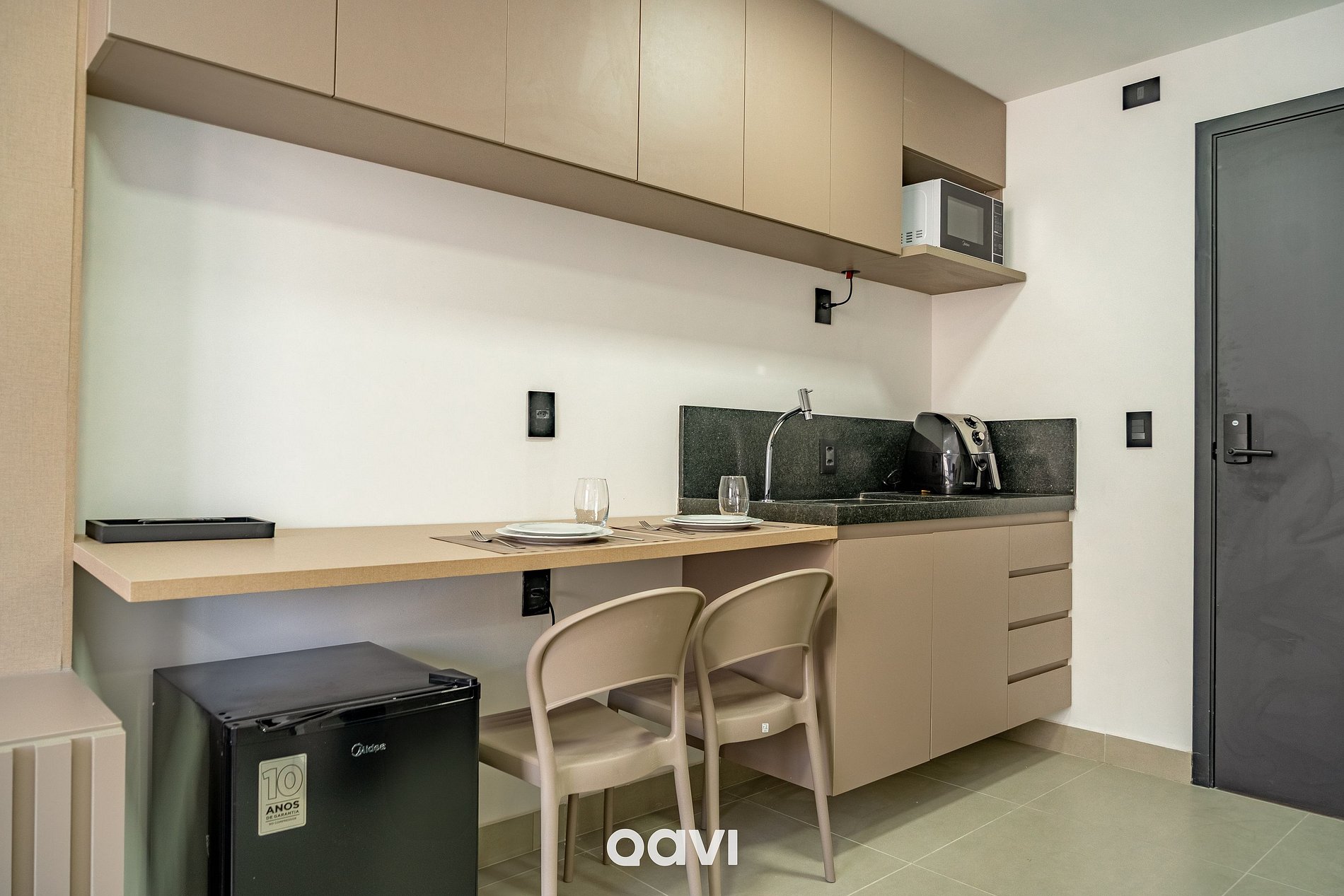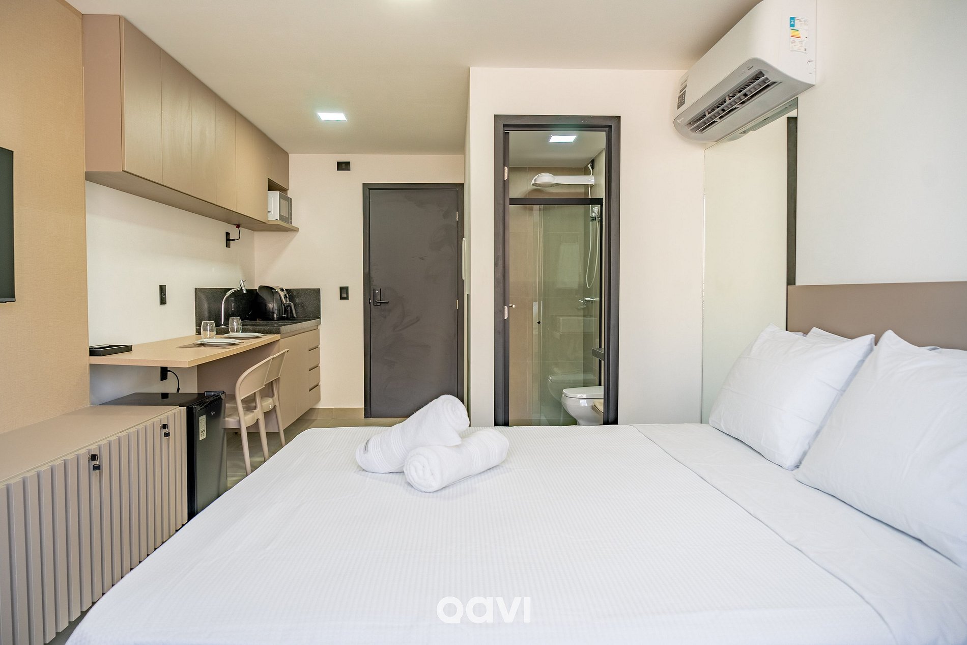 Este studio foi planejado para unir conforto e funcionalidade em um ambiente contemporâneo e acolhedor, pensado para proporcionar dias de descanso e conveniência.