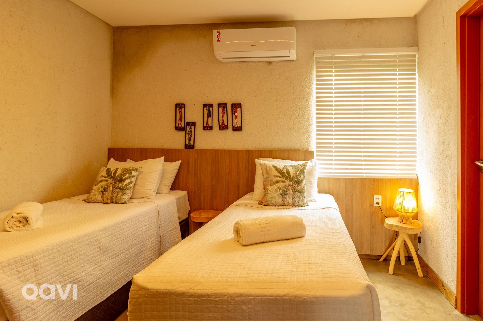 • Suíte 2: duas camas de solteiro + 1 auxiliar, ar-condicionado, armário e blackout nas cortinas;