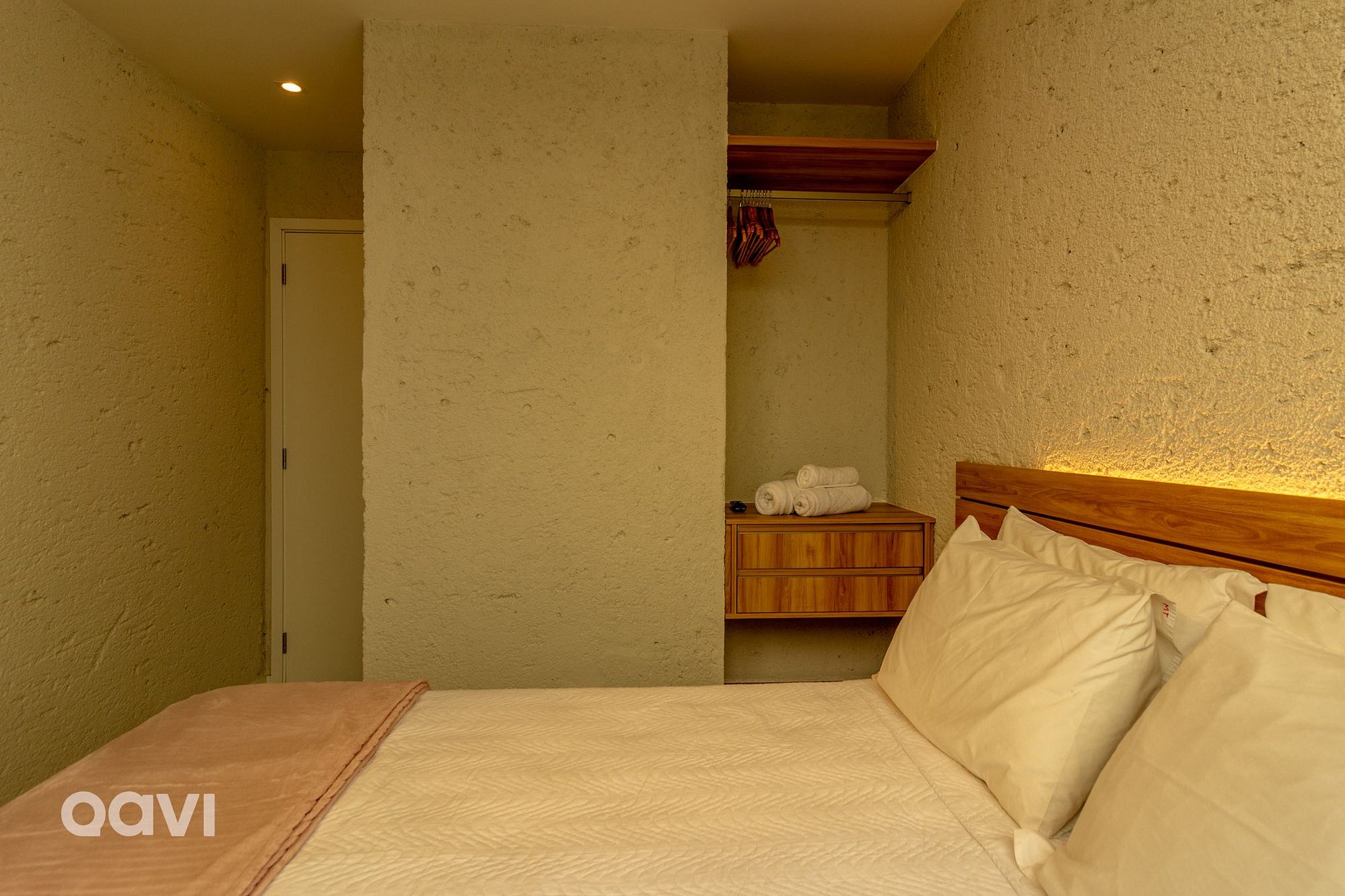-Suíte 2: Uma cama de casal, ar-condicionado, TV Smart, armário e blackout nas cortinas;