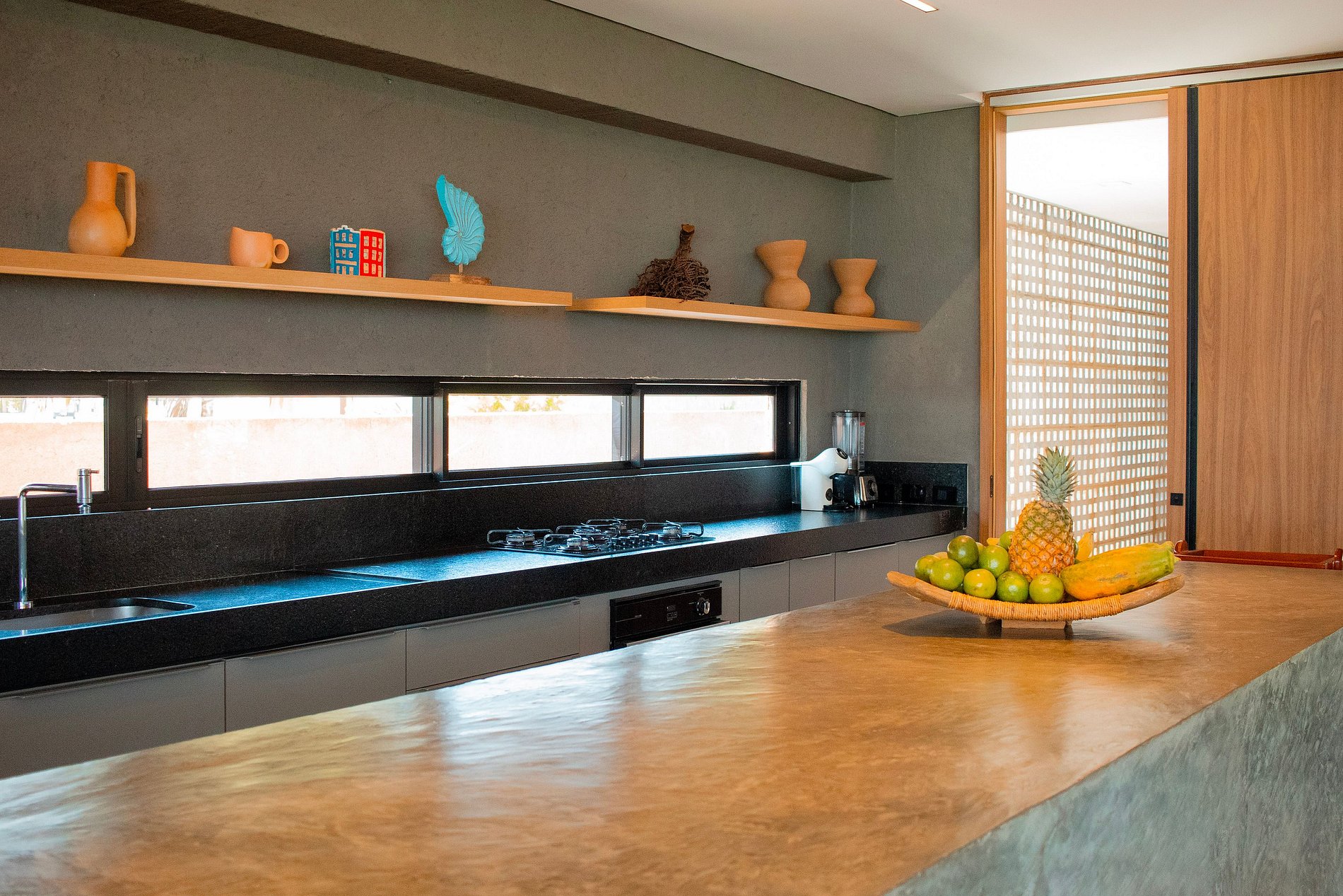 • Área de lazer: piscina, cadeiras, churrasqueira e divãs;