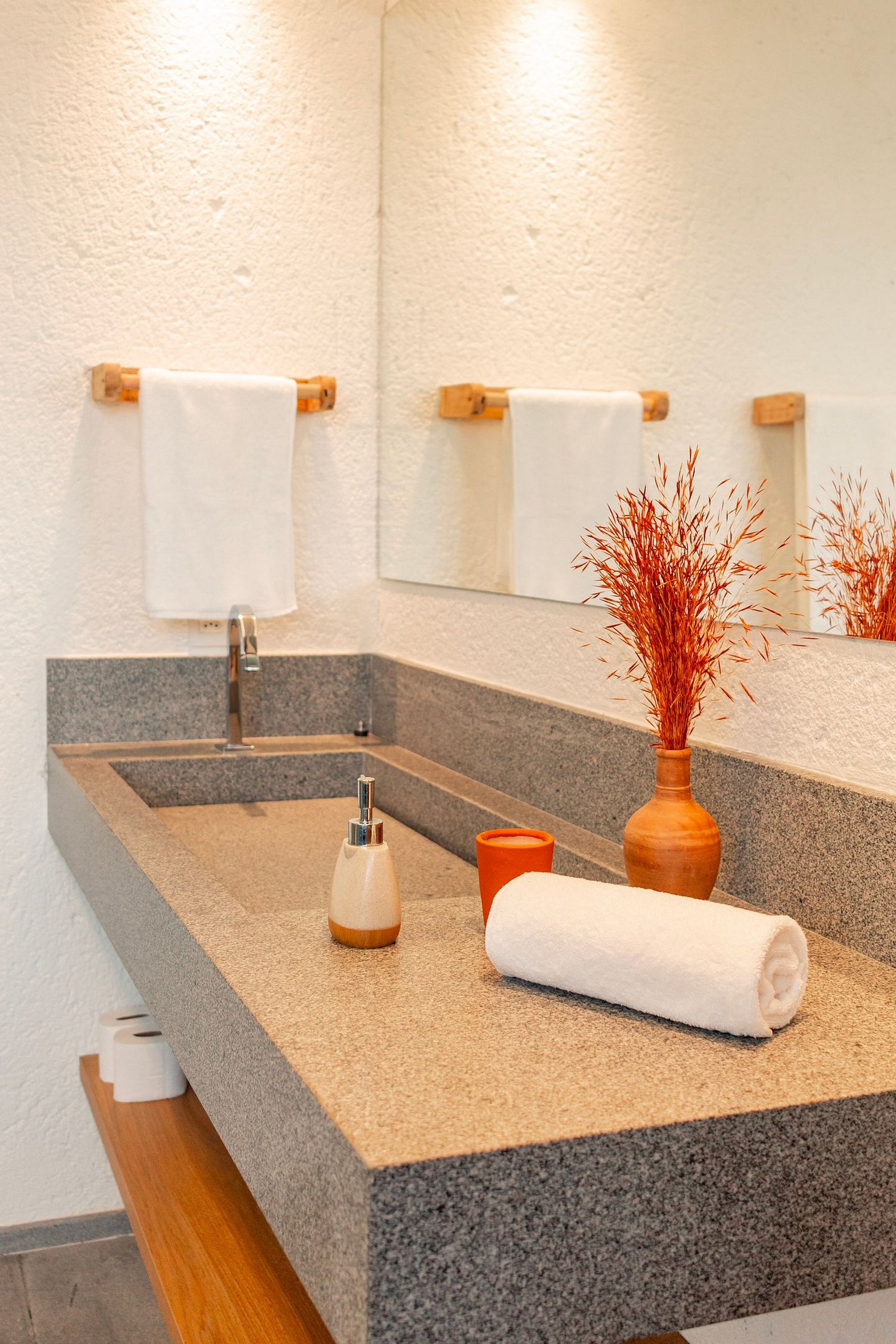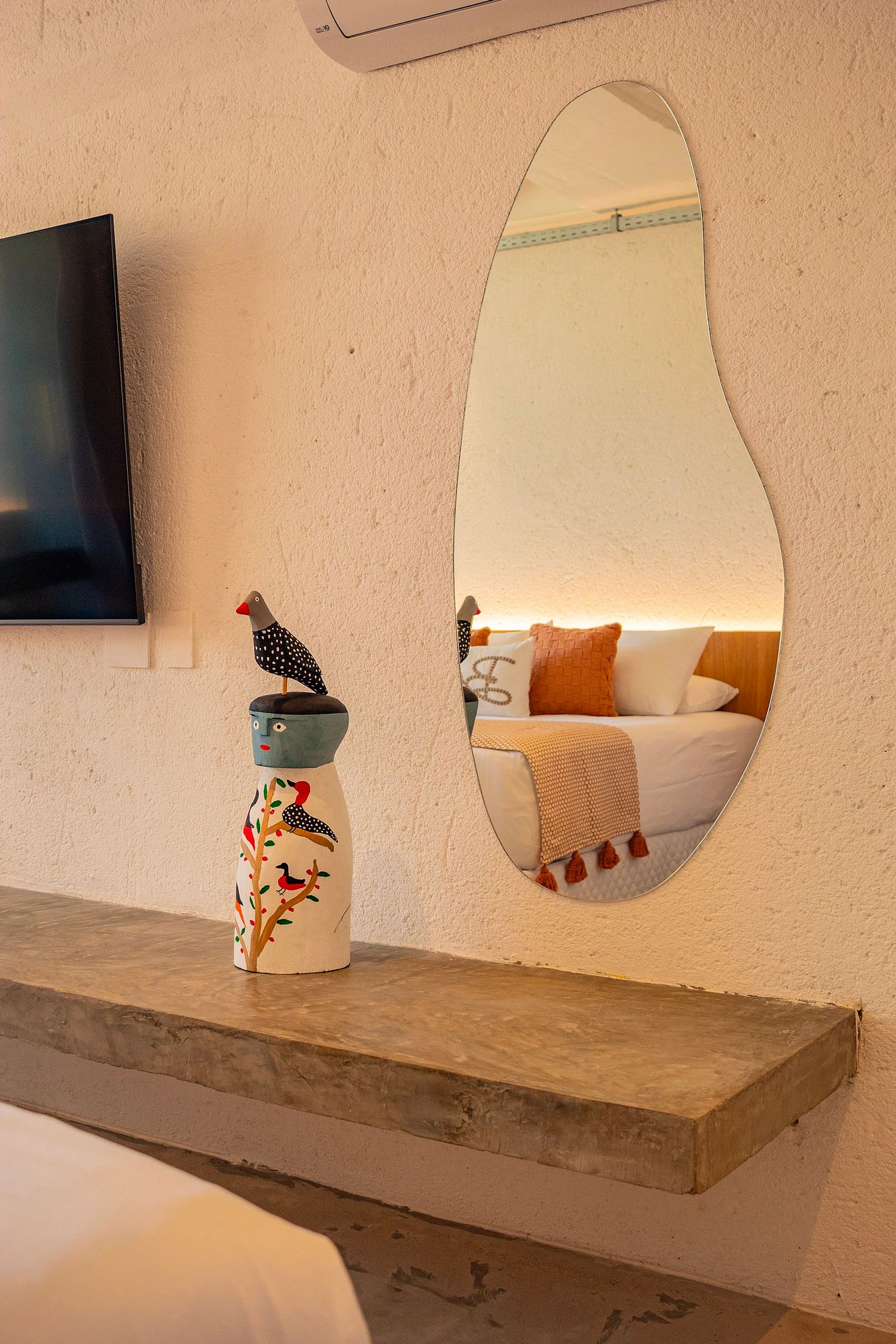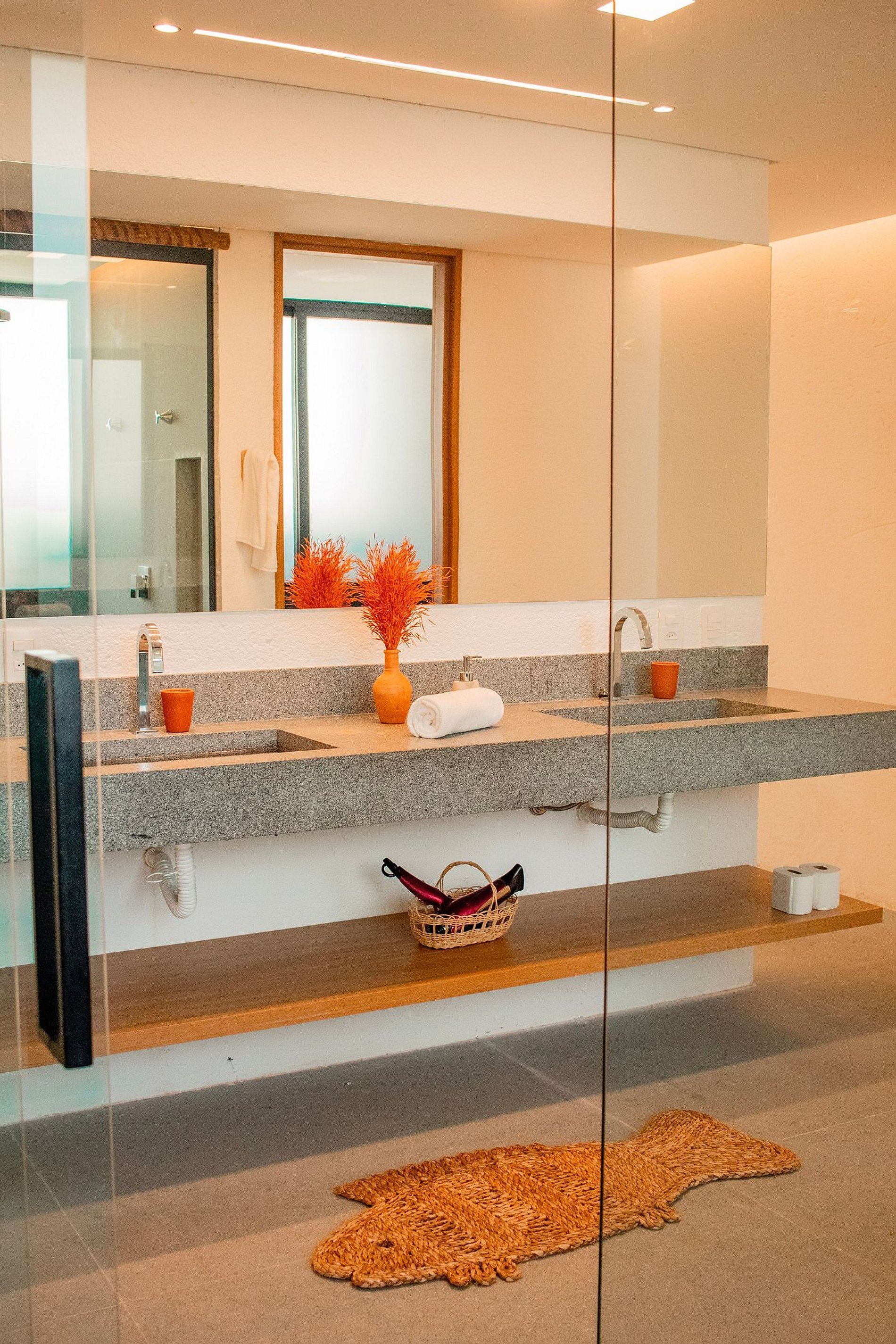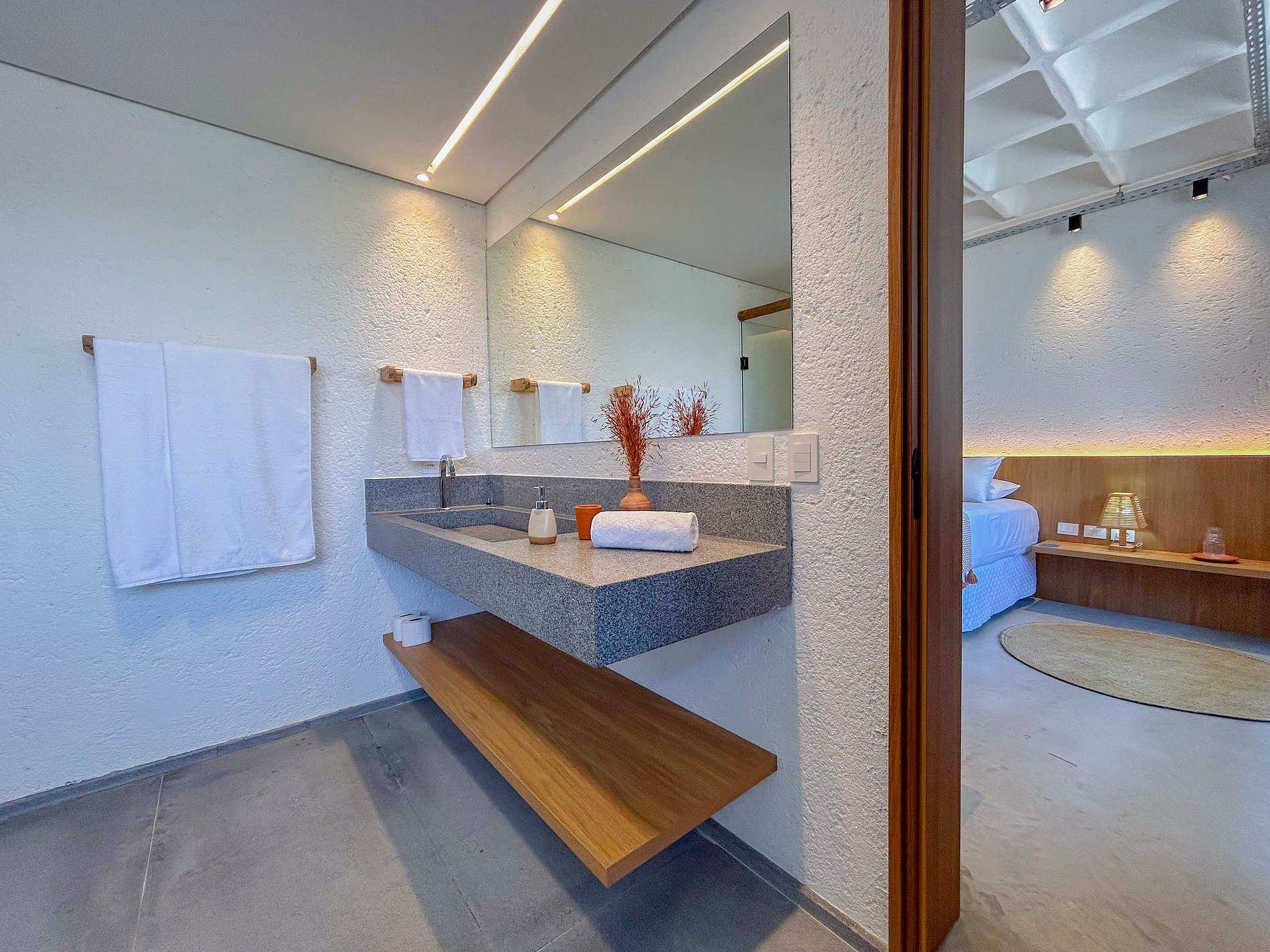 • Suíte principal: cama king + 1 auxiliar, ar-condicionado, televisão smart tv, espelho de corpo inteiro, aparelhos decorativos e banheiro com utensílios básicos;