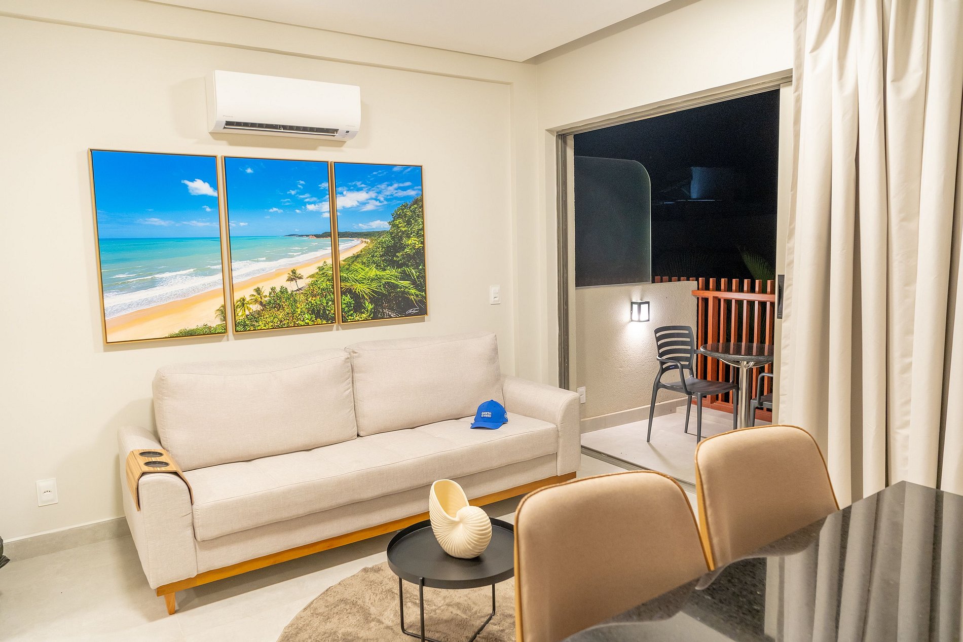 Apartamento no condomínio Île de Pipa. O condomínio possui 16.000 m² de área luxuosa e moderna e é localizado na avenida principal, próximo aos melhores bares e restaurantes da região, com acesso facilitado à praia principal da cidade. O condomínio possui um belo jardim e uma piscina adulta central, além disso, possui uma praia artificial com espreguiçadeiras.