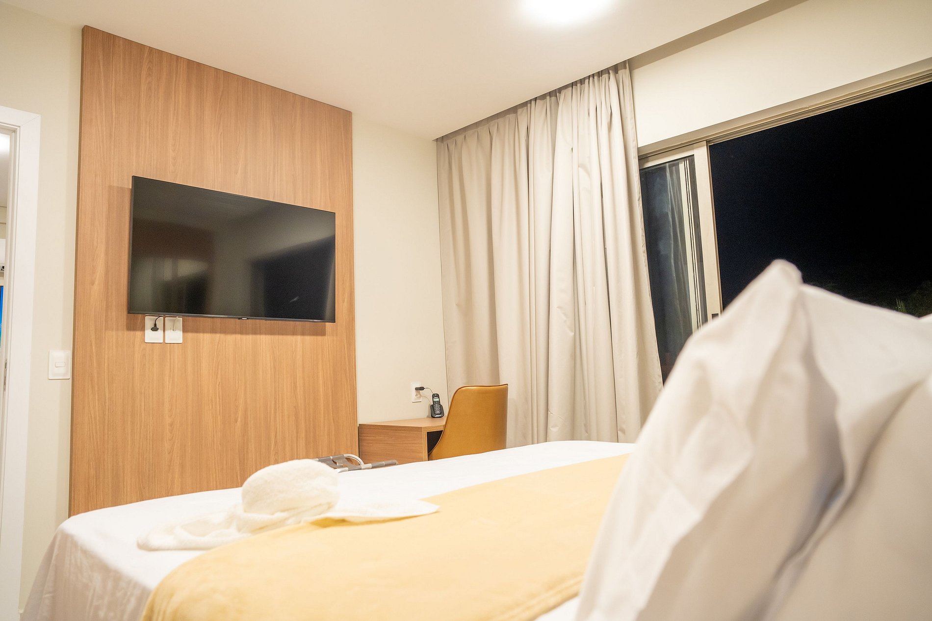 - Cozinha compacta: equipada com frigobar, fogão portátil, AirFry, microondas, cafeteria elétrica, torradeira/misteira, jogo de talheres, panelas, pratos e copos.
