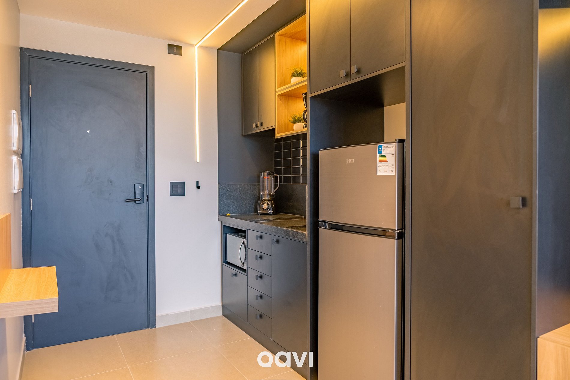 Este studio foi planejado para unir conforto e funcionalidade em um ambiente contemporâneo e acolhedor, pensado para proporcionar dias de descanso e conveniência.