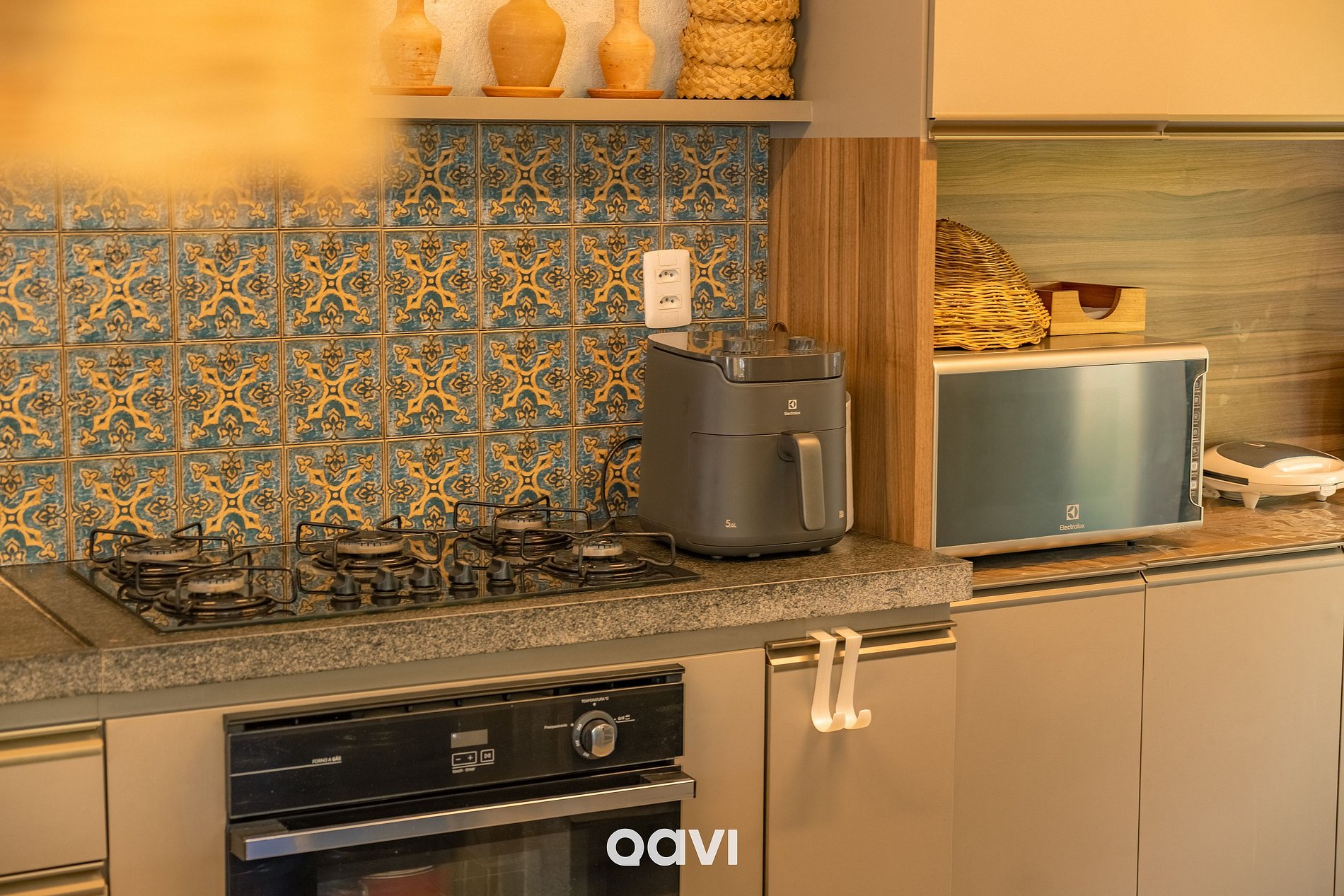 Cozinha: Fogão de 5 bocas, forno, geladeira, micro-ondas, filtro de água, liquidificador, panelas. taças, jogos de mesa completos, formas de bolo, tostadeira, cafeteira da nespresso, aparelhos de servir, pratos, copos e talheres para serviço de 16 pessoas;