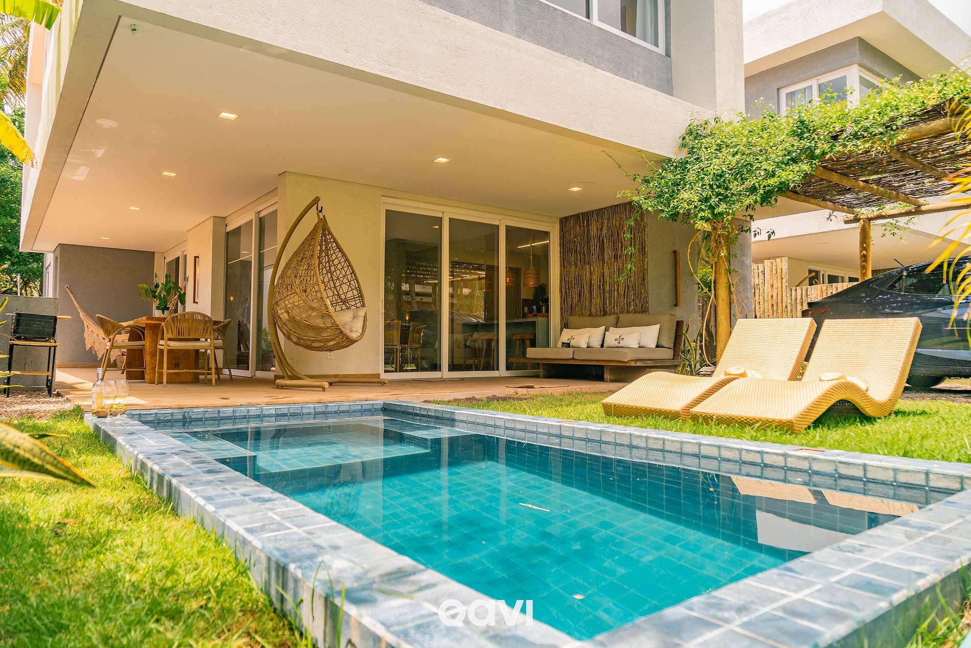 Com linda decoração, privacidade e segurança, sua área externa/varanda: Piscina privativa, garagem e espaço de lazer.