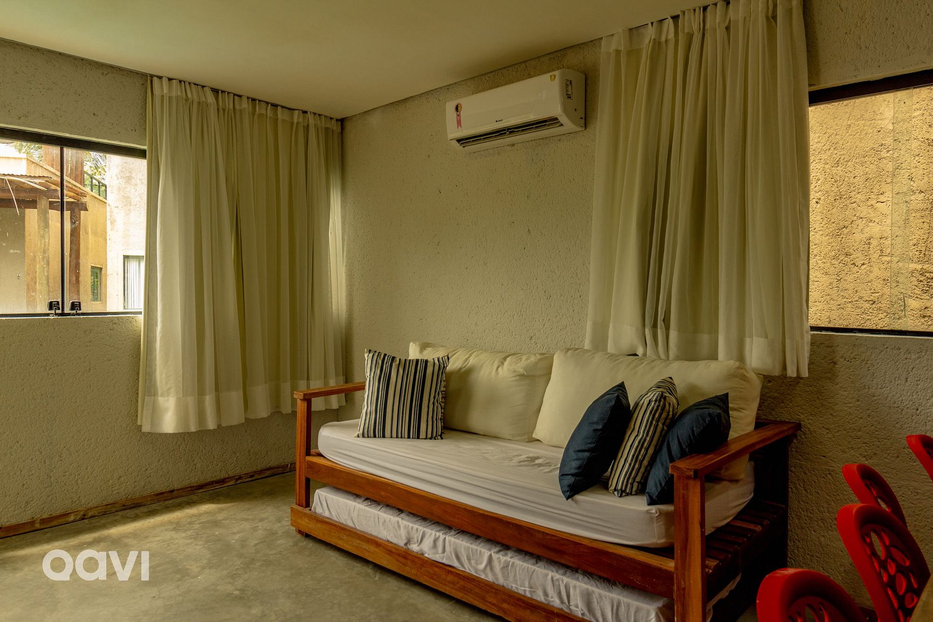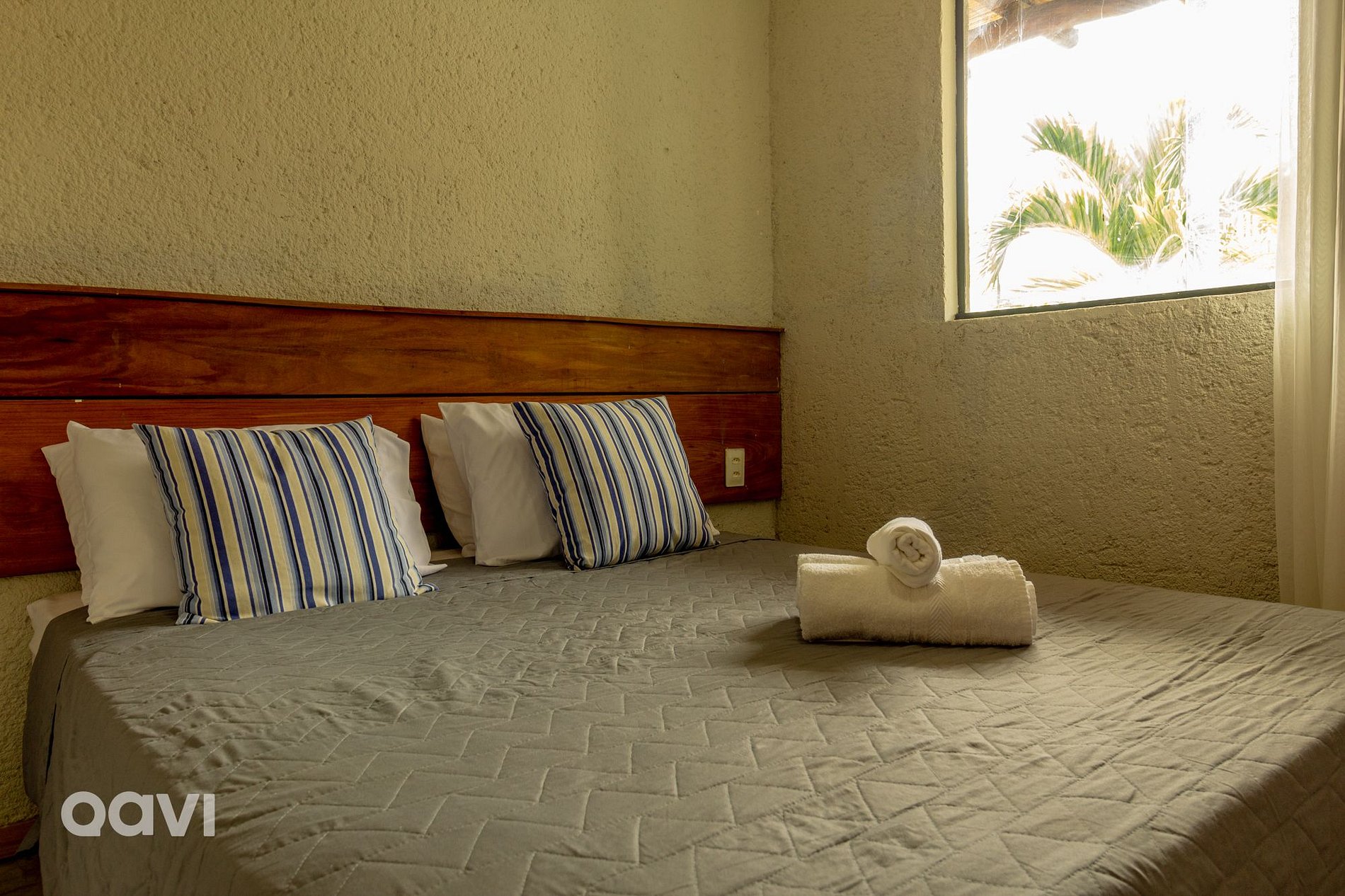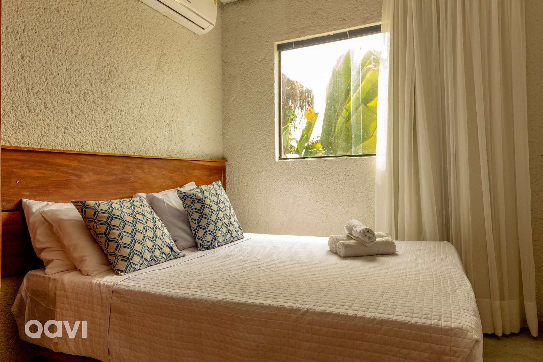 • Suíte 2: cama de casal, ar-condicionado, aparelhos decorativos e banheiro com utensílios básicos;