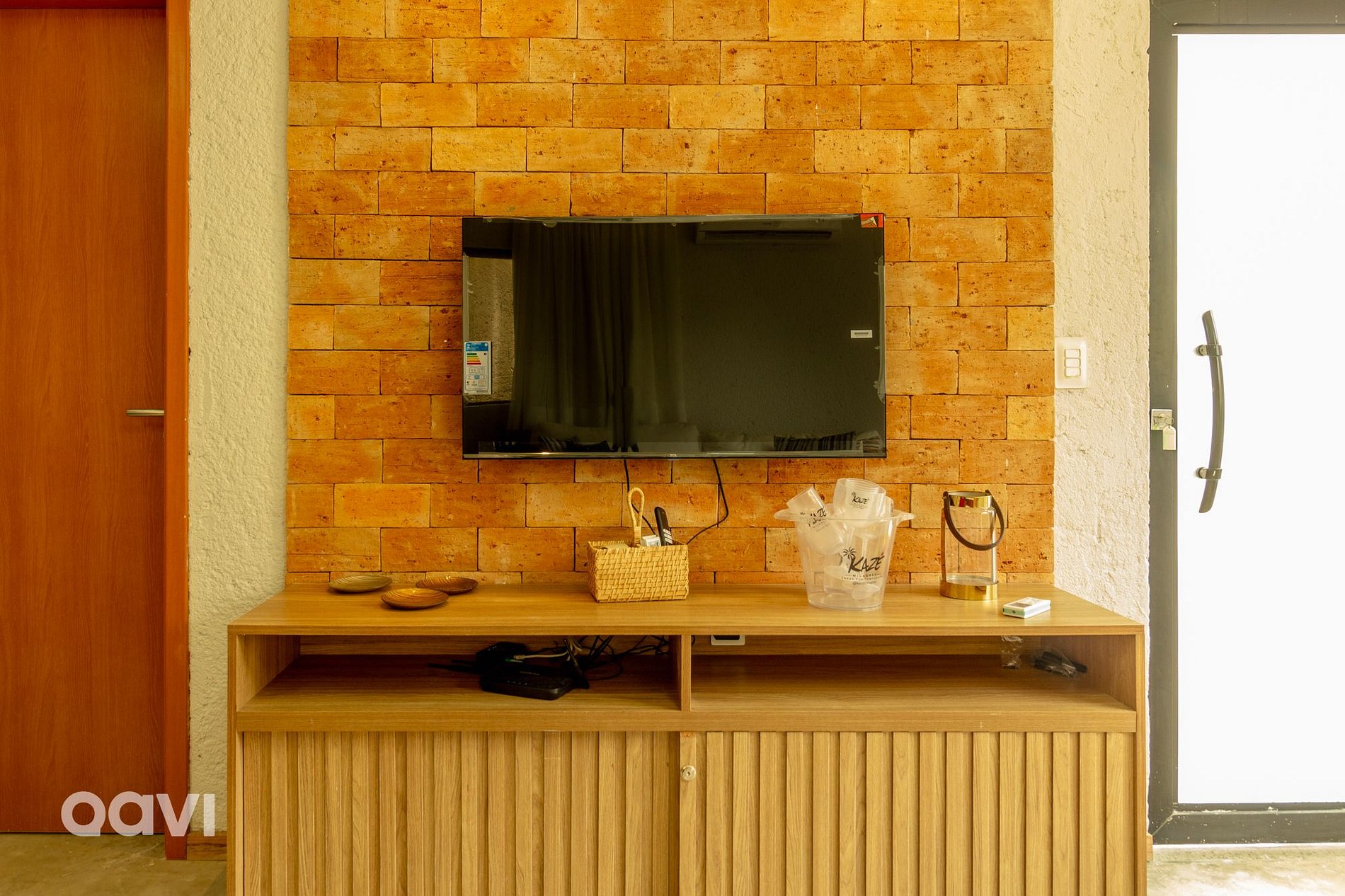 • Sala de TV: Televisão (Smart-TV), sofá-cama, rack.