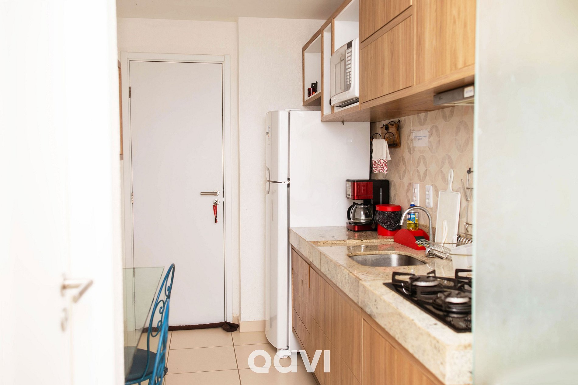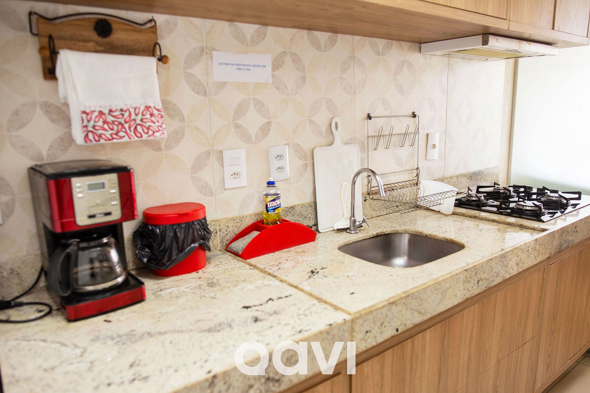 - Cozinha mobiliada com bancada em granito, cooktop, depurador de ar, geladeira, micro-ondas, liquidificador, grill, máquina de café oster e cutelaria em geral, todos recém adquiridos. Sala de jantar/estar com TV de 32", sofá cama de casal e varanda com rede.