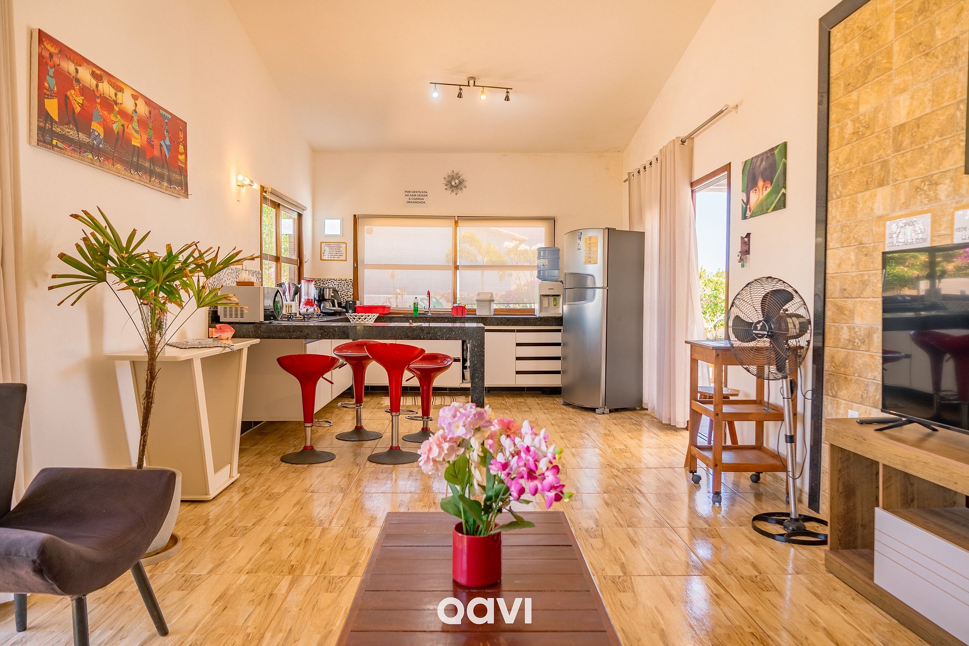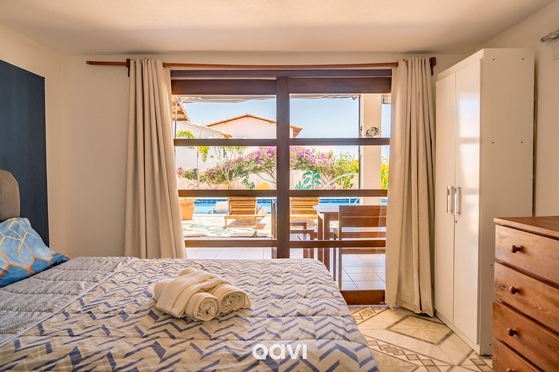 - A casa é ampla, arejada e muito bem equipada, composta por 3 quartos (sendo 2 suítes), sala de estar, cozinha americana, varanda com piscina privativa, área gourmet, jardim e garagem privativa. Conta ainda com Wi-Fi e TV por assinatura para o conforto dos hóspedes.