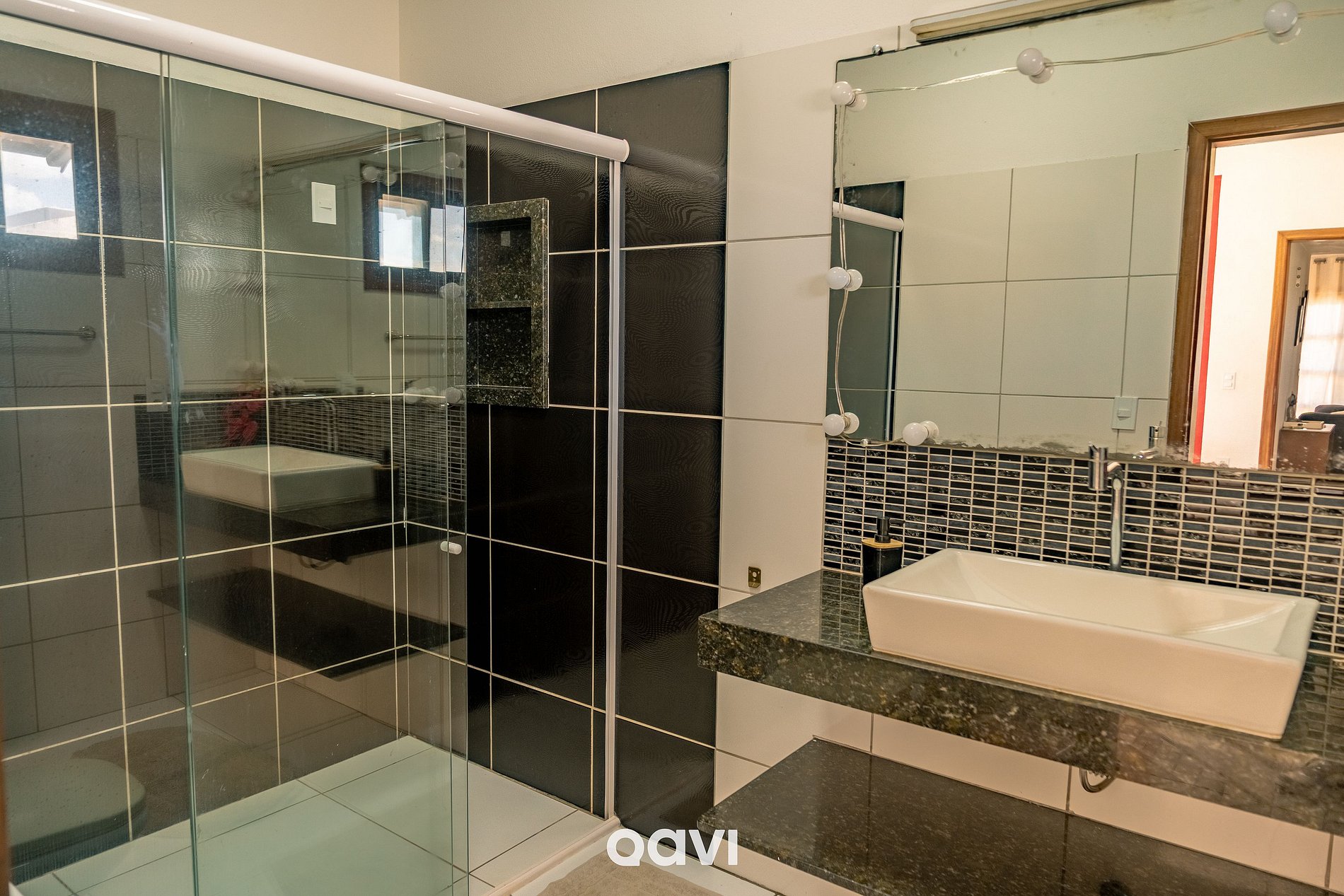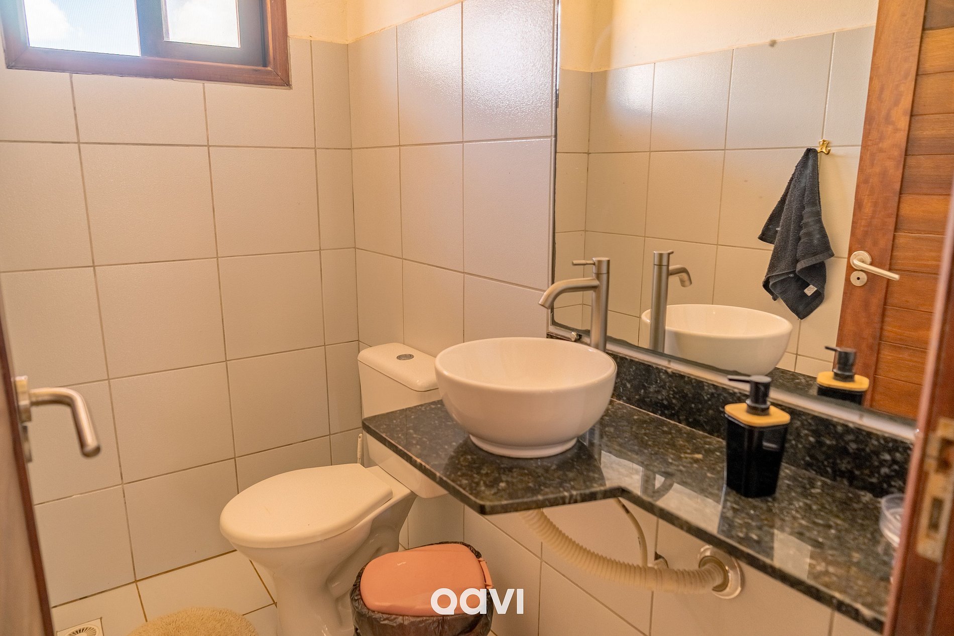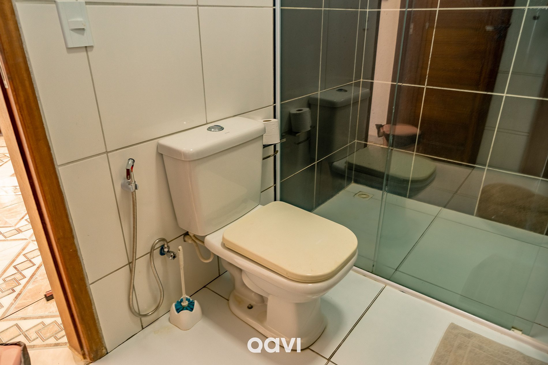 - Há ainda um banheiro interno adicional, completo, com pia, espelho e porta-toalhas.