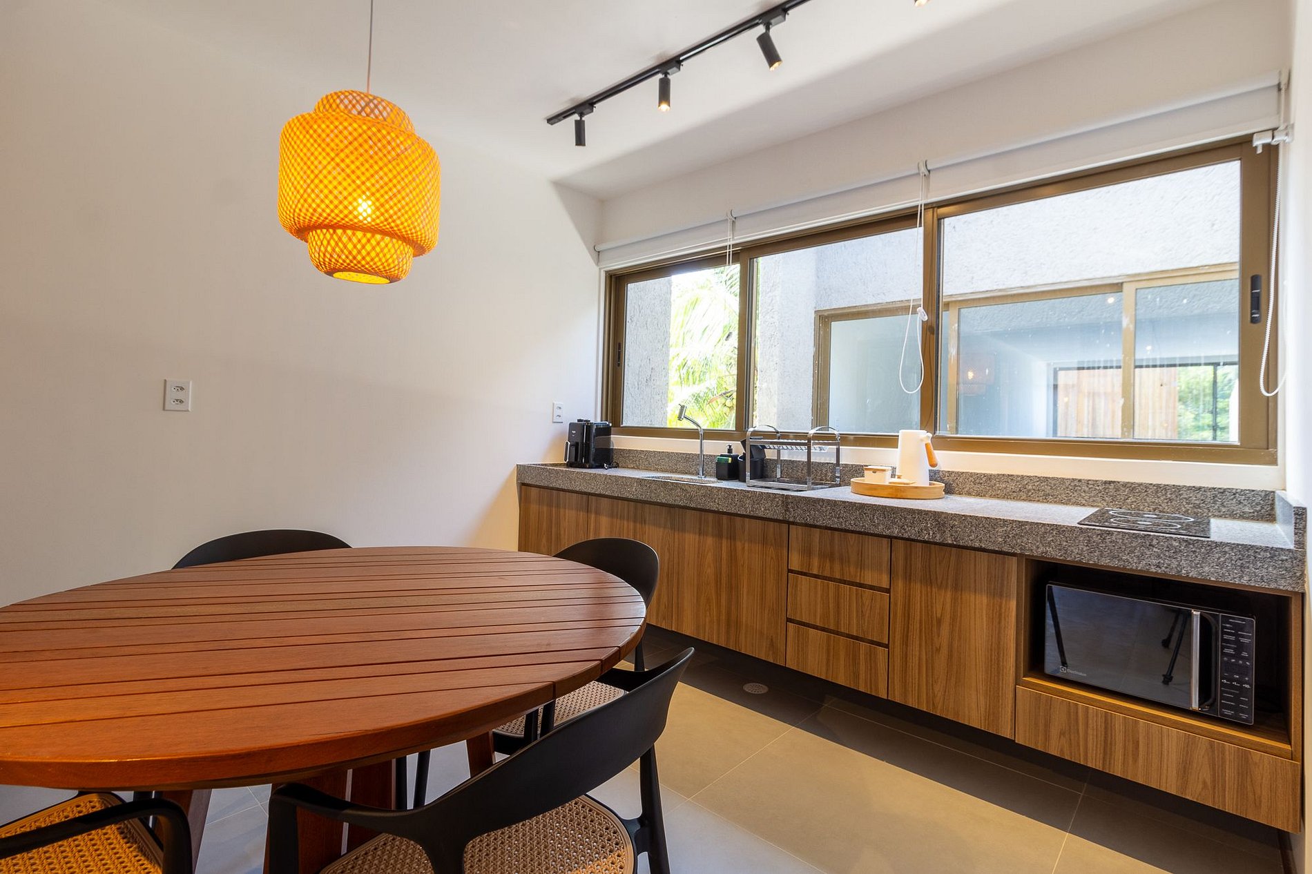 • Estúdio: sofá-cama de casal, cama de casal, ar condicionado, Smart TV, cortinas blackout, armário, banheiro privativo;