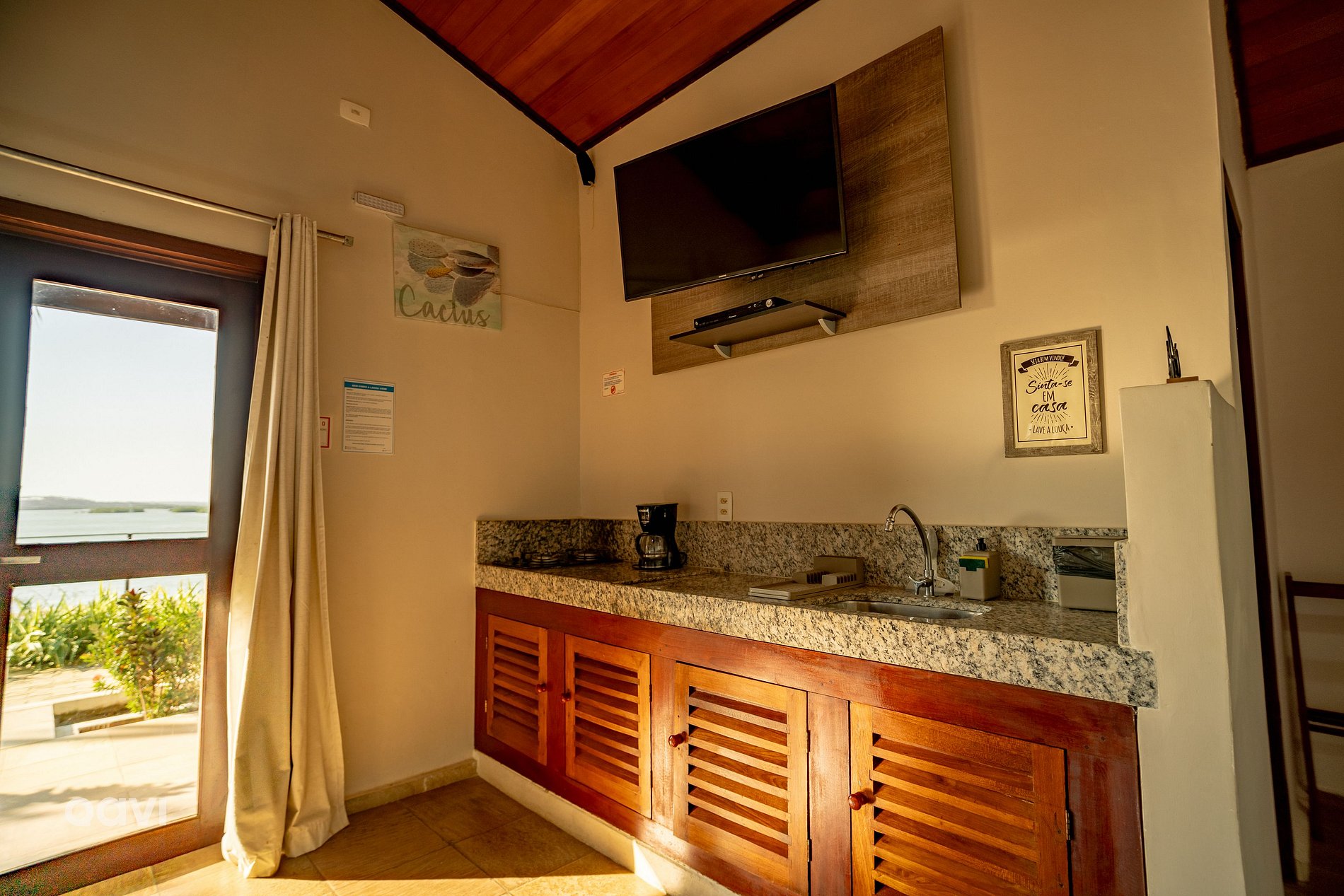 El hotel dispone de aire acondicionado, TV, armario, cama king size, red y están equipados con mini cocina (fogón coocktop 2 bocas, frigobar, utensilios de cocina, sándwich eléctrico).