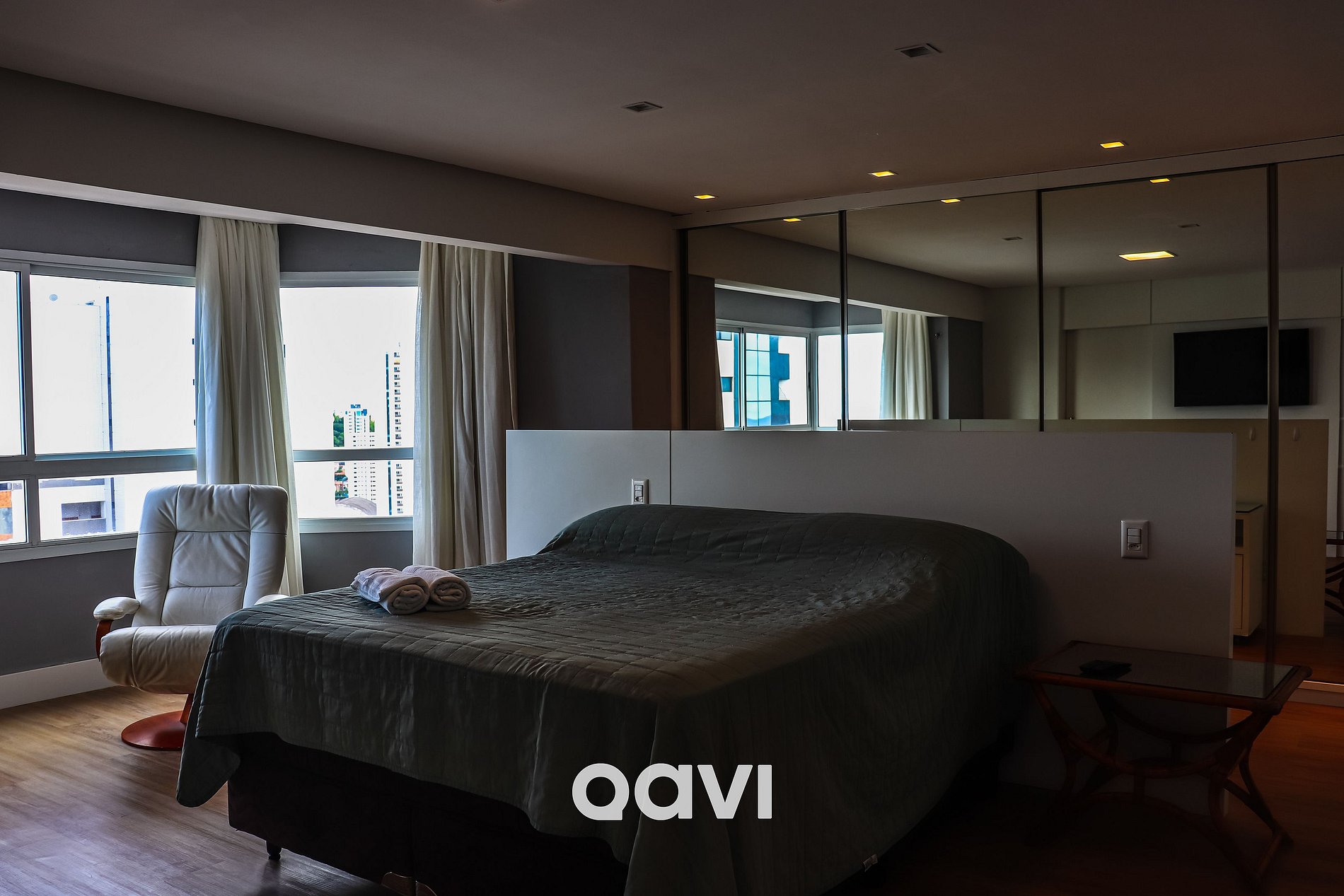 O quarto com vista lateral para o mar possui: cama de casal, frigobar, cofre pessoal, poltrona relaxante, cozinha compacta com mesa de apoio, mesa de jantar com 2 cadeiras, wifi, mesa de cabeceira com abajur, armário e cabides, ar-condicionado, banheiro com chuveiro quente e secador, Smart TV com canais a cabo e interfone.
