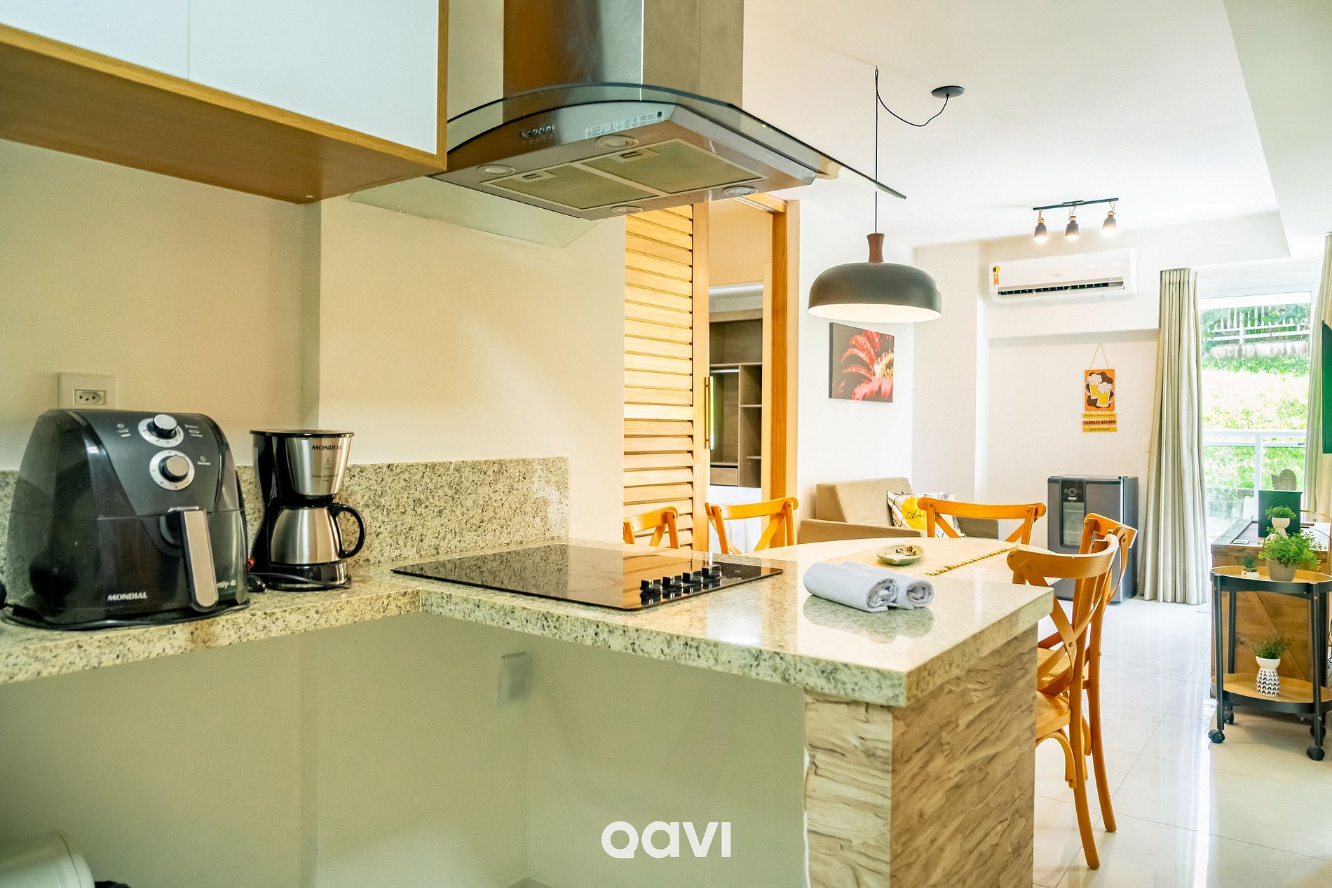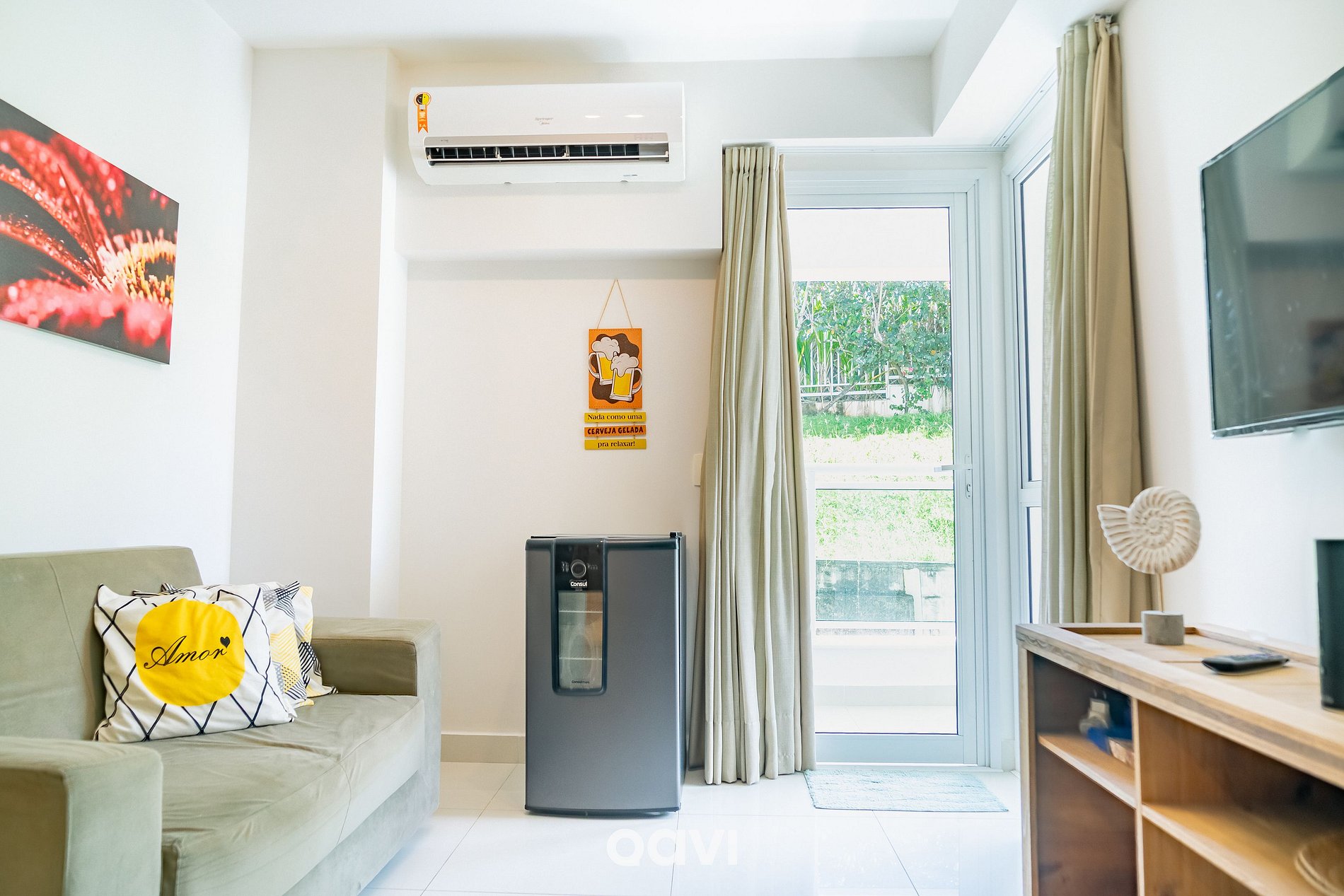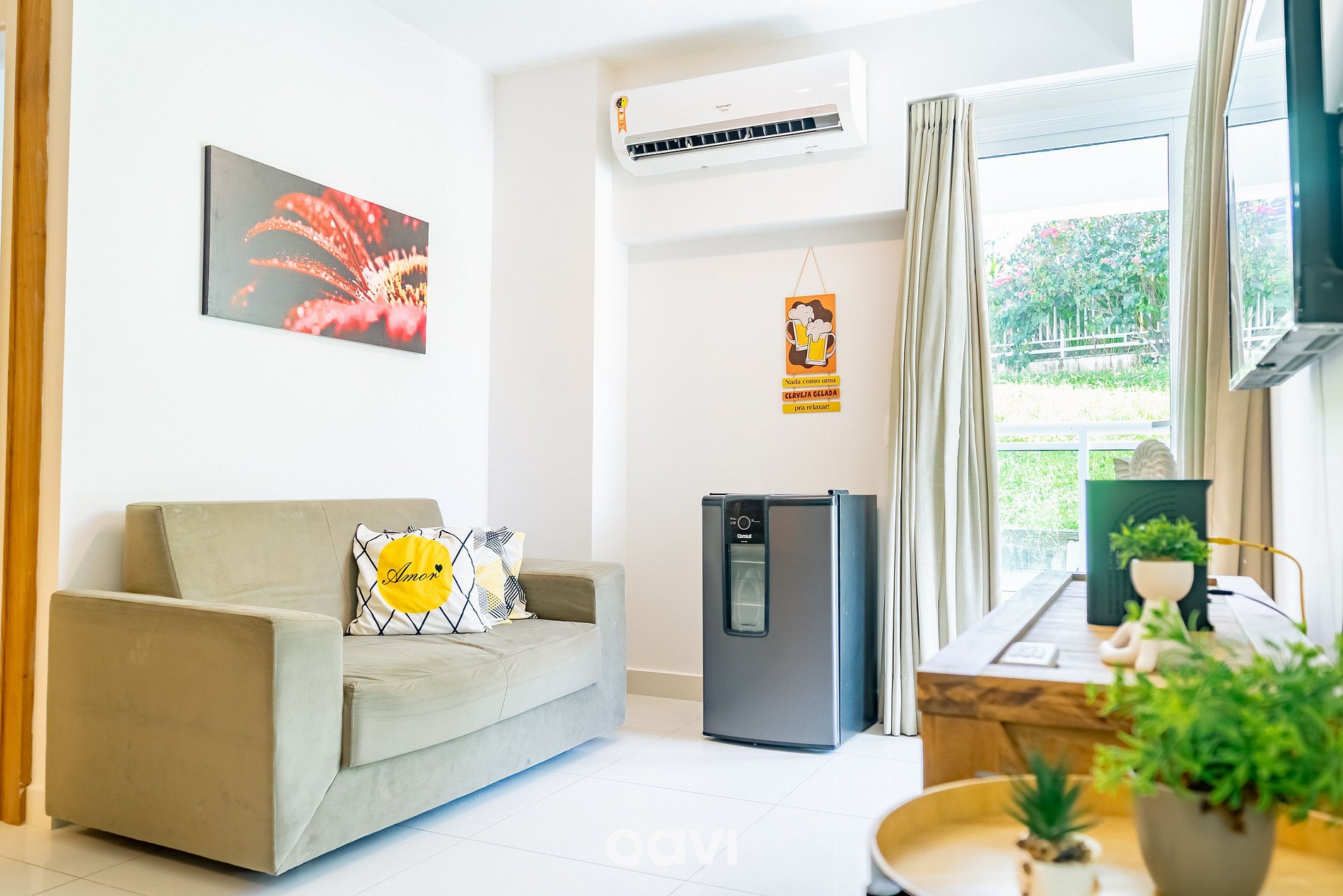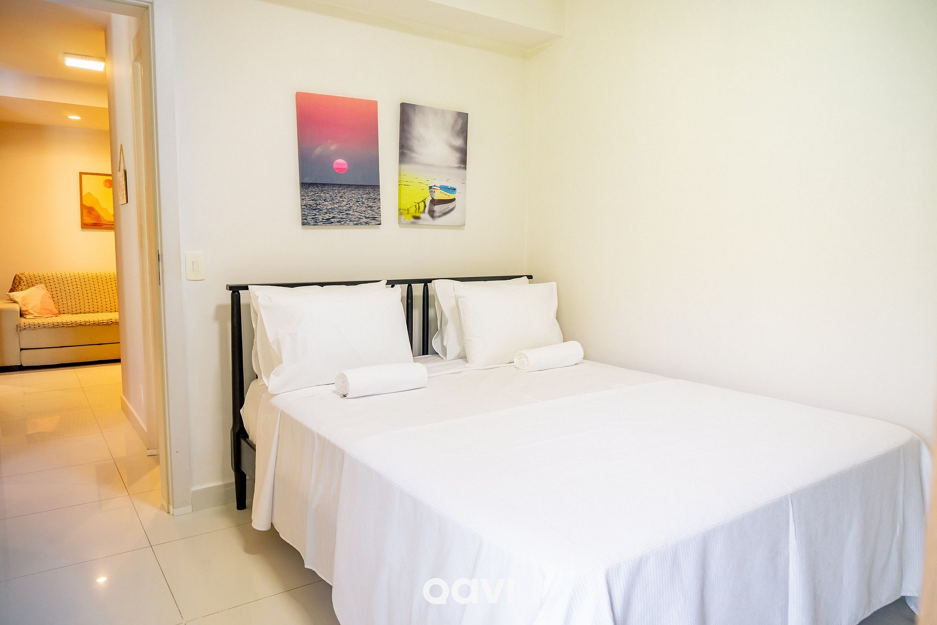 Moderno, arejado e completo, este flat acomoda com conforto até 4 pessoas. Ideal para estadias curtas ou prolongadas, com tudo o que você precisa para se sentir em casa com o charme de estar à beira-mar.