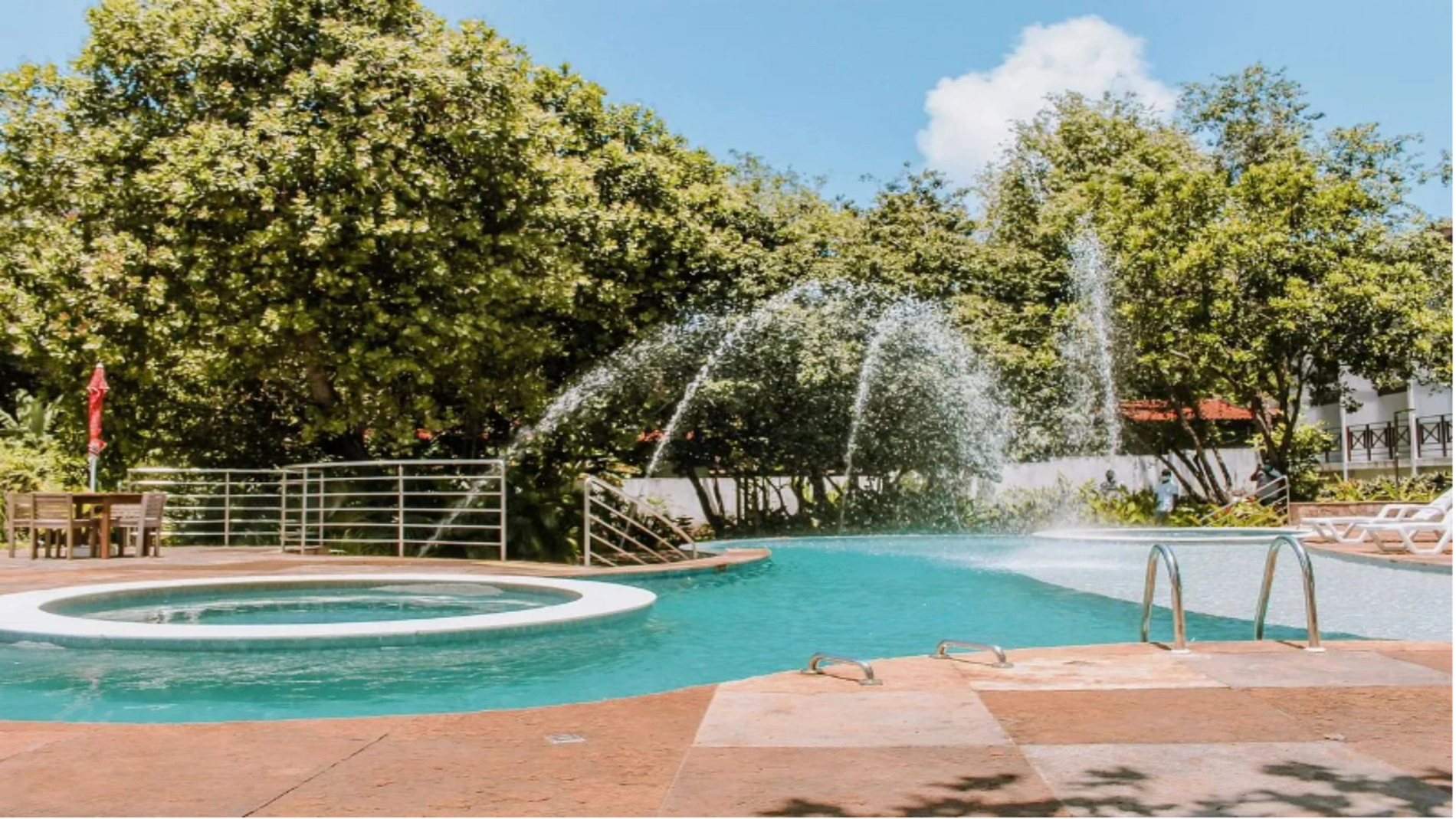O condomínio possui uma piscina adulta com jatos de água e duas piscinas de hidromassagem, além disso, possui elevador, lavanderia, restaurante, segurança, recepção 24h e uma vaga de estacionamento rotativo por apartamento.