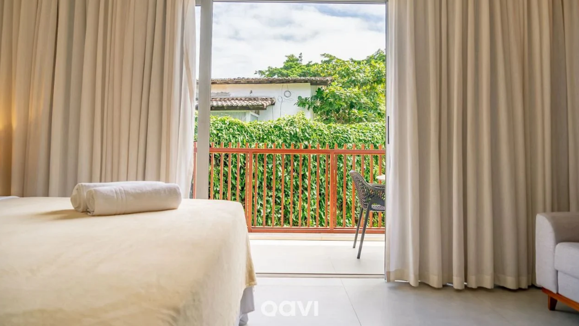 - Quarto: 1 cama de casal king, 1 sofá, Smart TV, mesas de cabeceira, cofre eletrônico, ar-condicionado e suporte de malas.