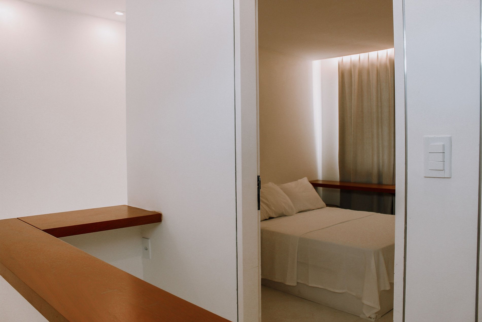 • 2 quartos (cama de casal, ar-condicionado e armário), sendo uma suíte.