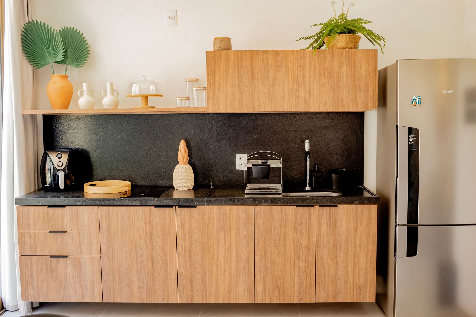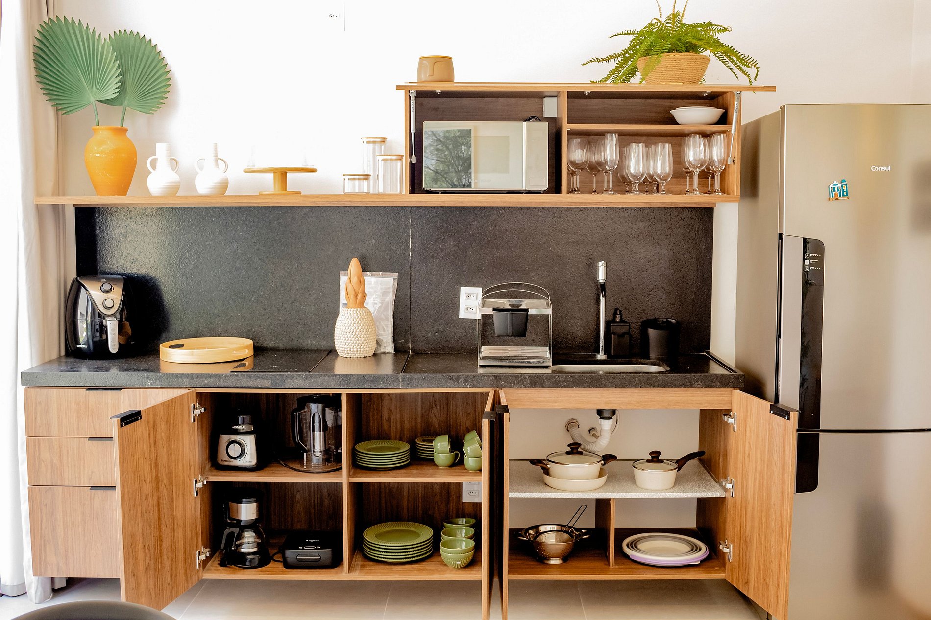 • Cozinha completa com cooktop, airfryer e utensílios;