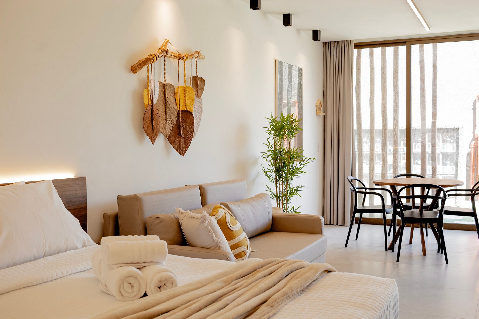 Studio em condominio a apenas 30 metros da paradisíaca praia de Tatuamunha, super completo sala de estar e cozinha integrados, dentro do condomínio de luxo Essence Tatuamunha que conta com segurança 24h e uma estrutura de lazer com piscinas incluindo uma no rooftop que oferece uma vista sem igual.