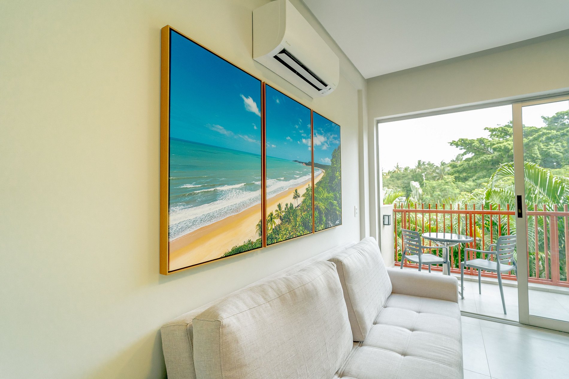 - Sala: sofá-cama, ar-condicionado, mesa para 4 pessoas e televisão;