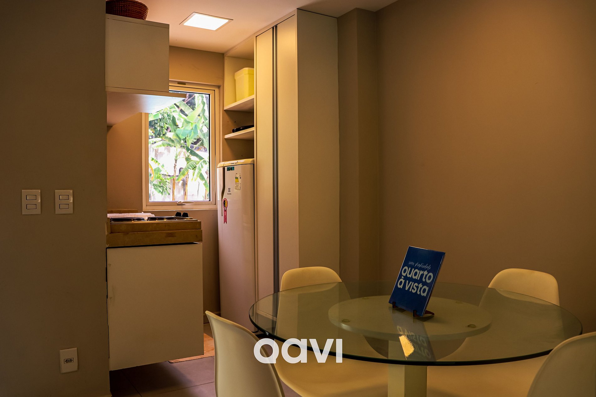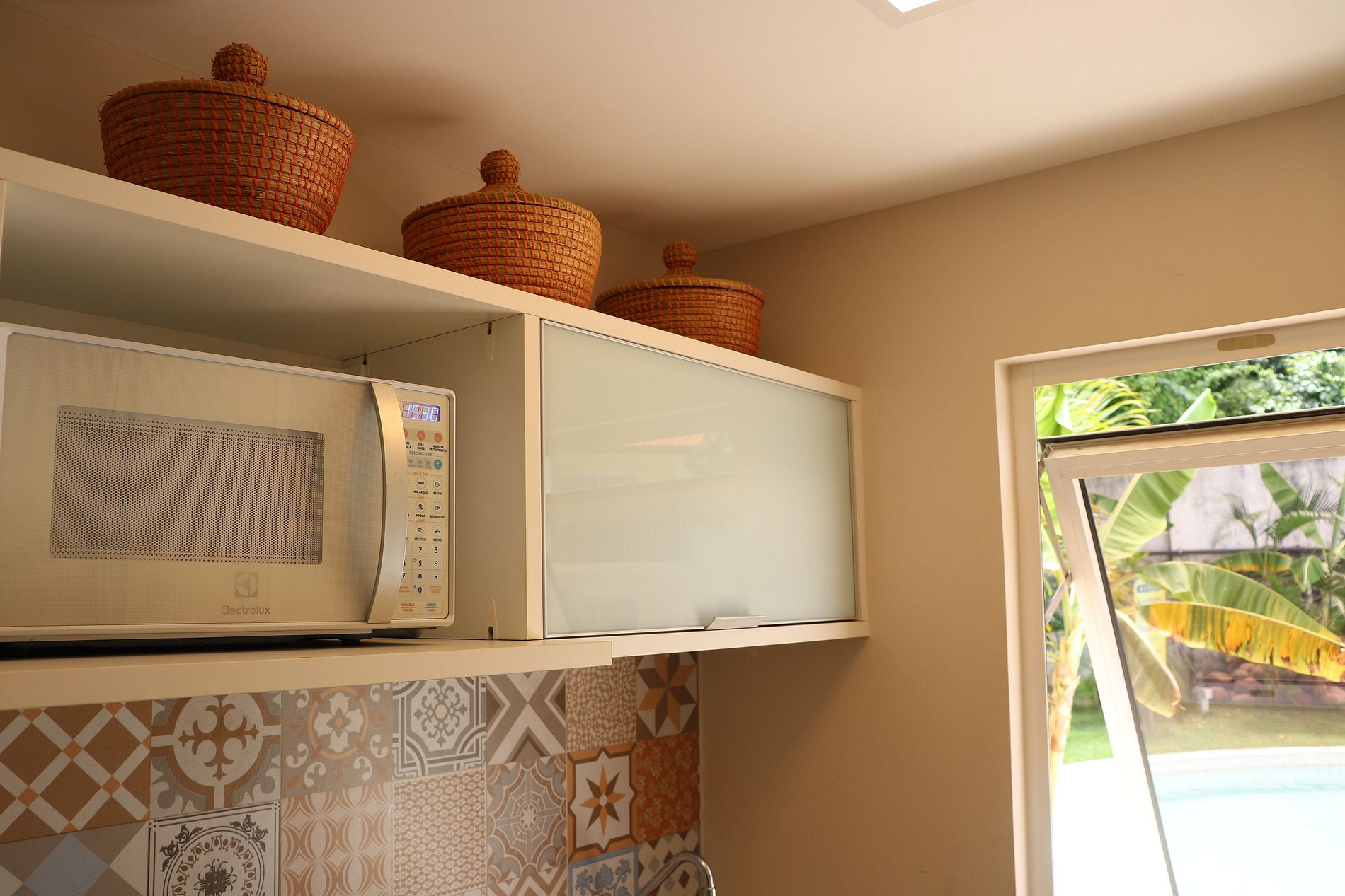 • Cozinha compacta completa (fogão, geladeira, micro-ondas e utensílios)
