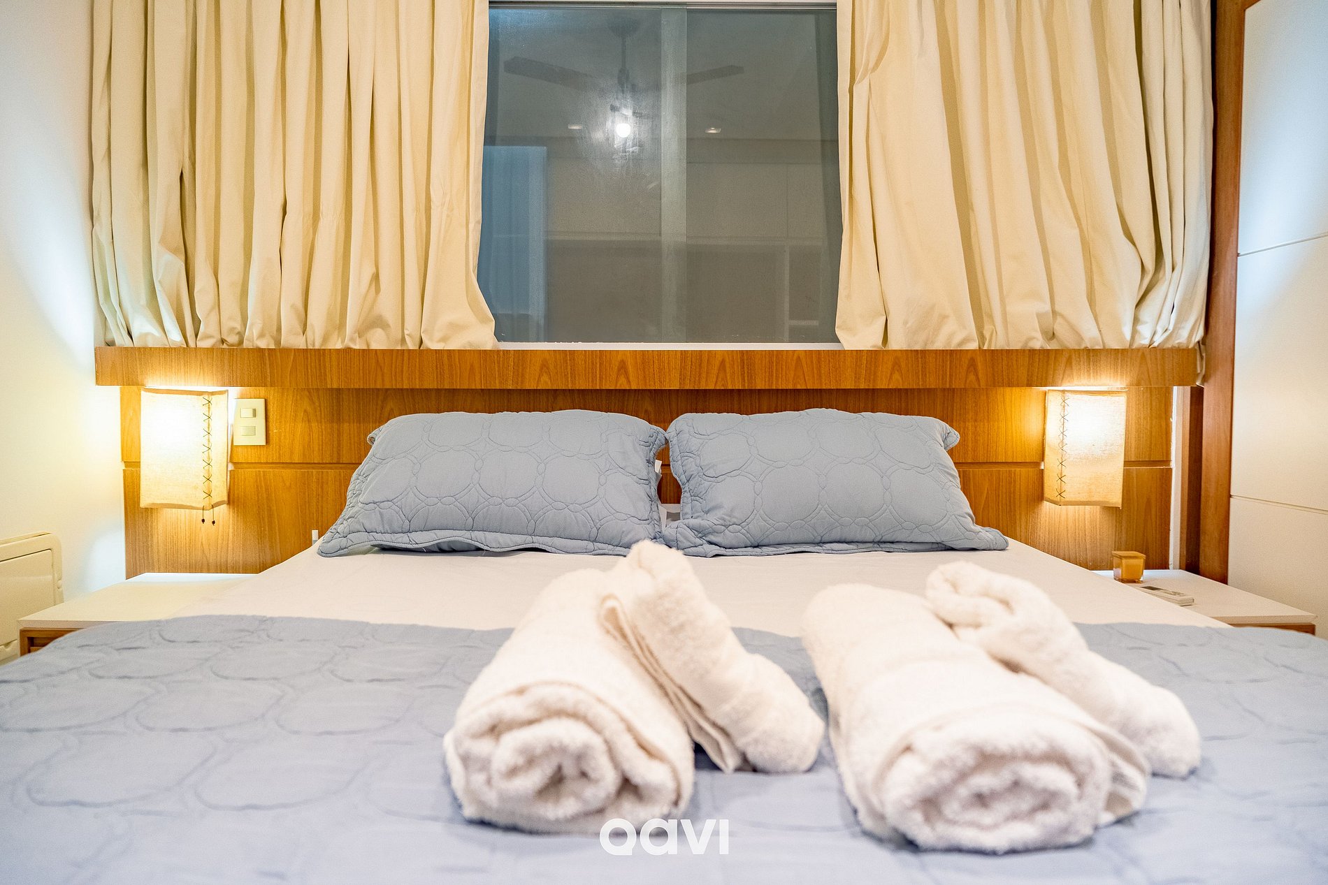 Além disso, o apartamento conta com cadeiras de praia, guarda sol, macarrão para piscina, prancha de surf e toalhas de praia, além de kit de frescobol e alguns jogos para divertimento em família.