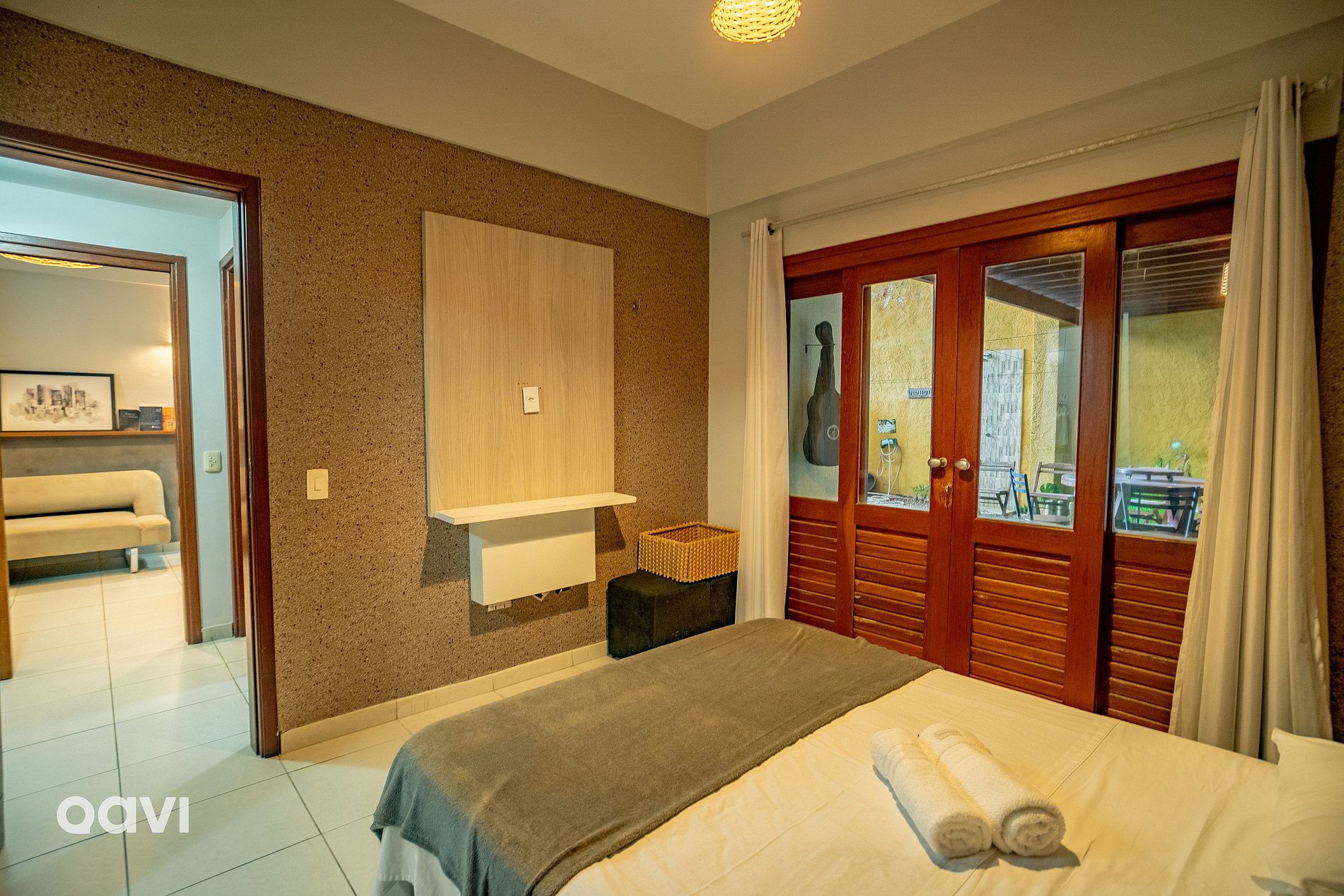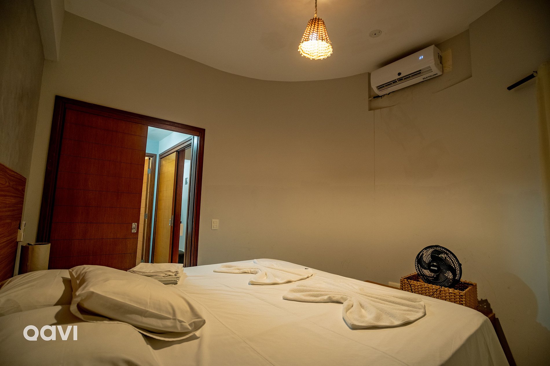 - Quarto 2: Cama de casal king, ar-condicionado e cômoda em madeira maciça para colocar seus pertences.